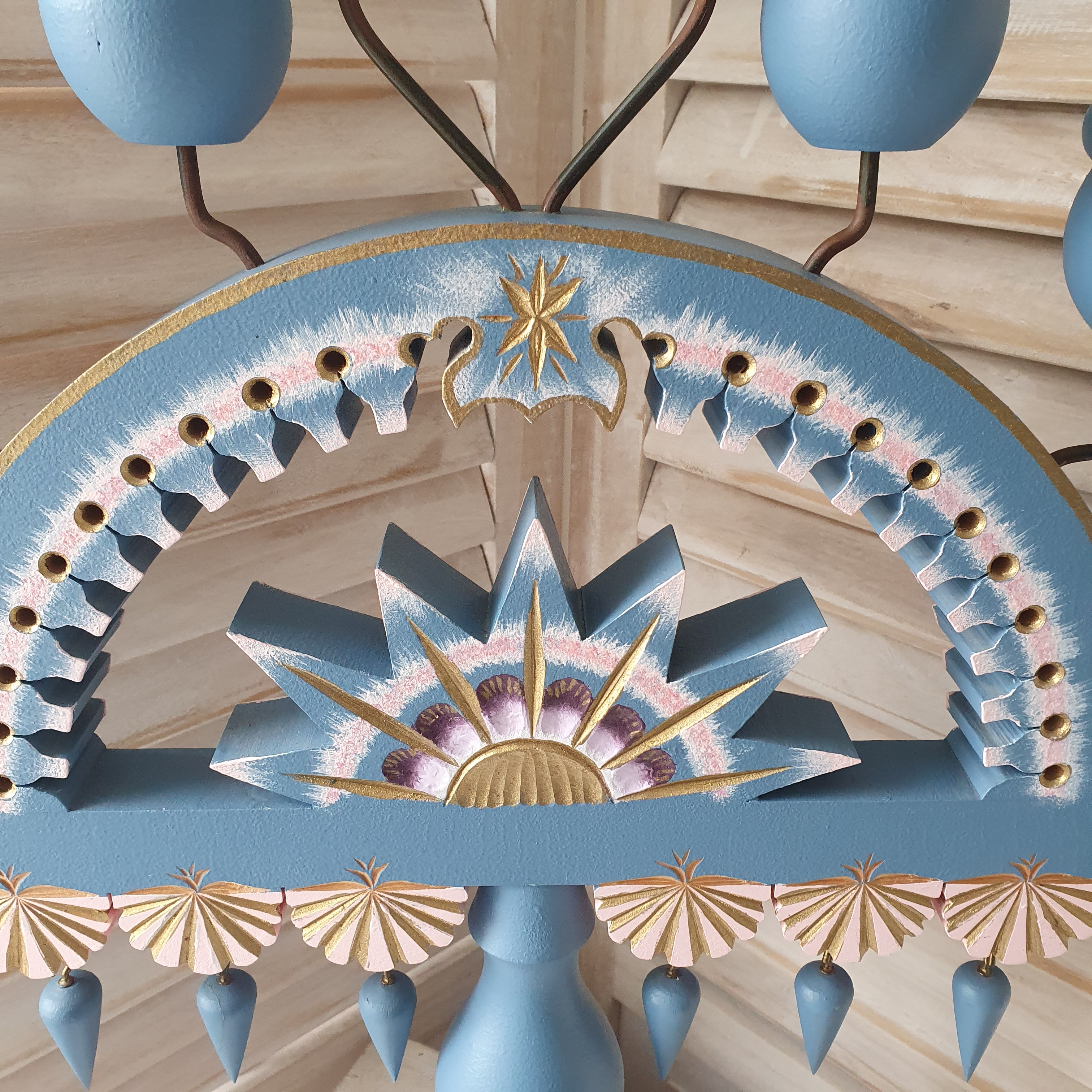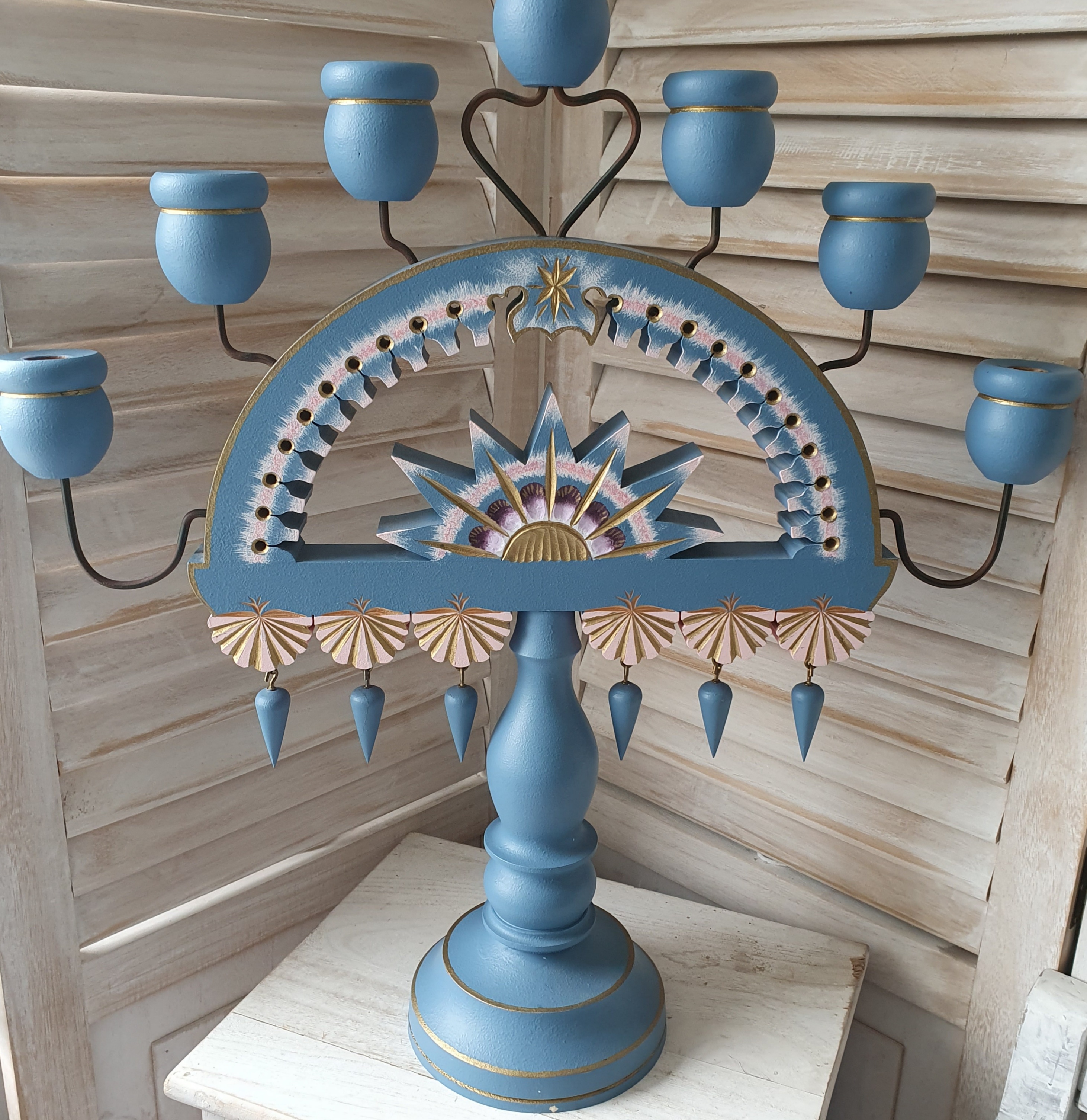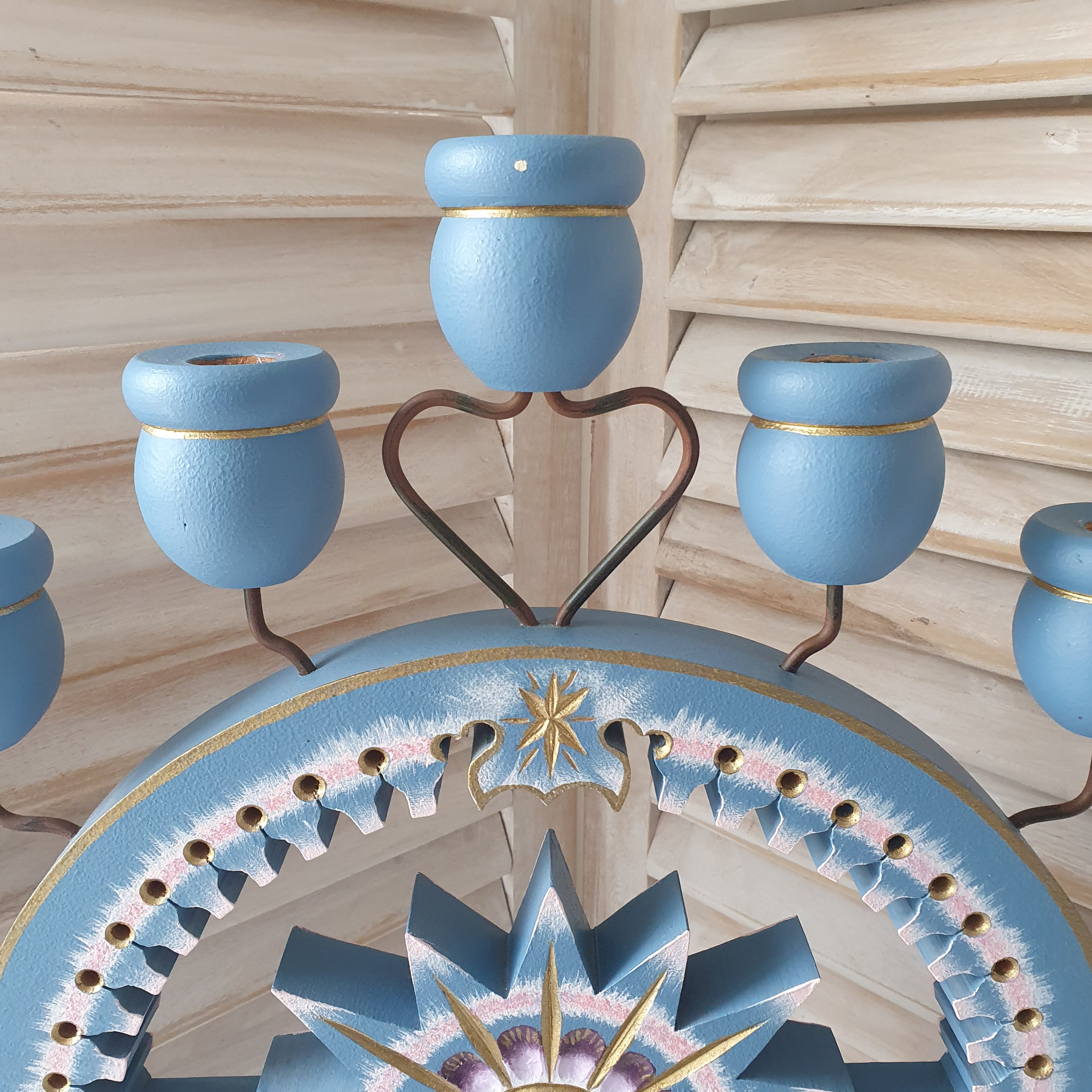Kerzenleuchter ANCA 7 armig blau gebraucht Holz Skandinavien Kerzenhalter Weihnacht