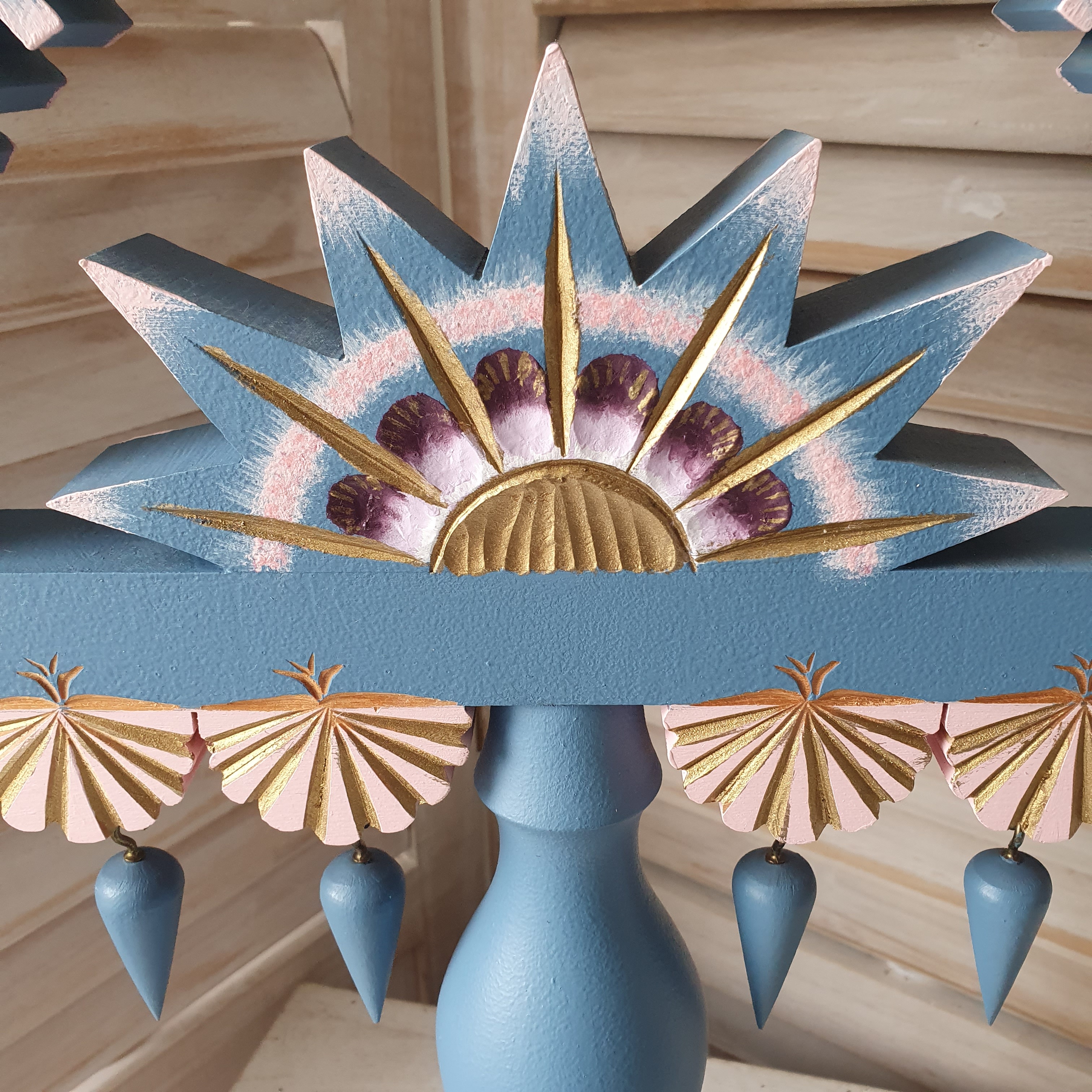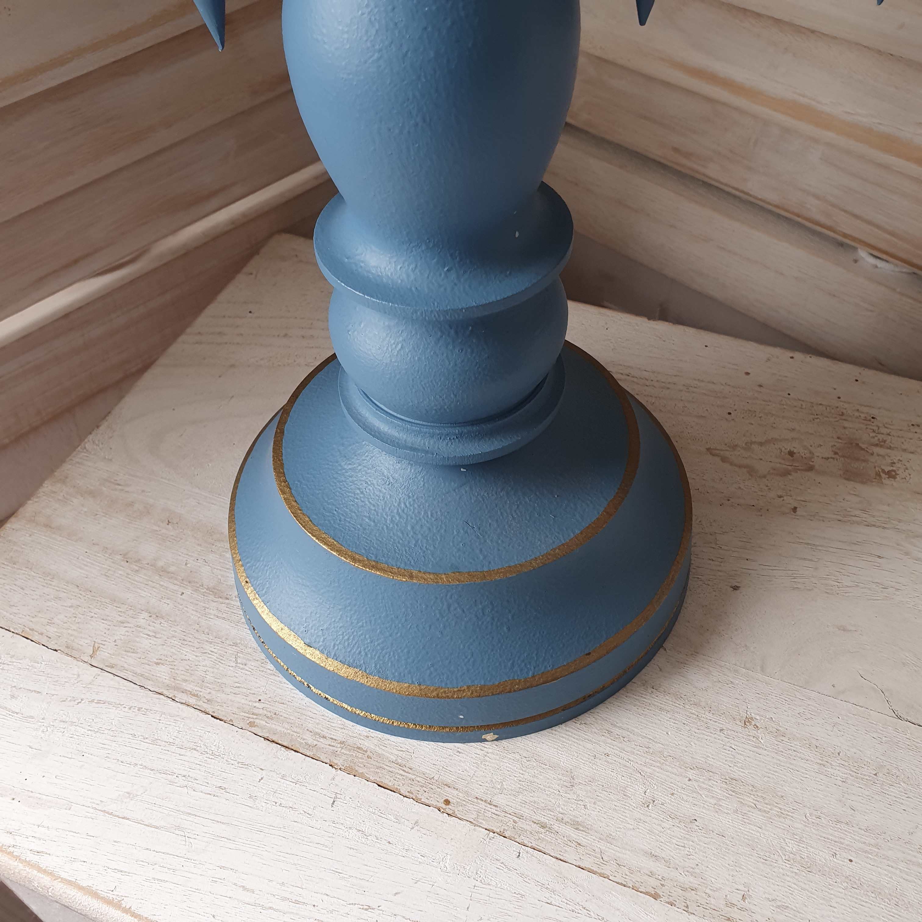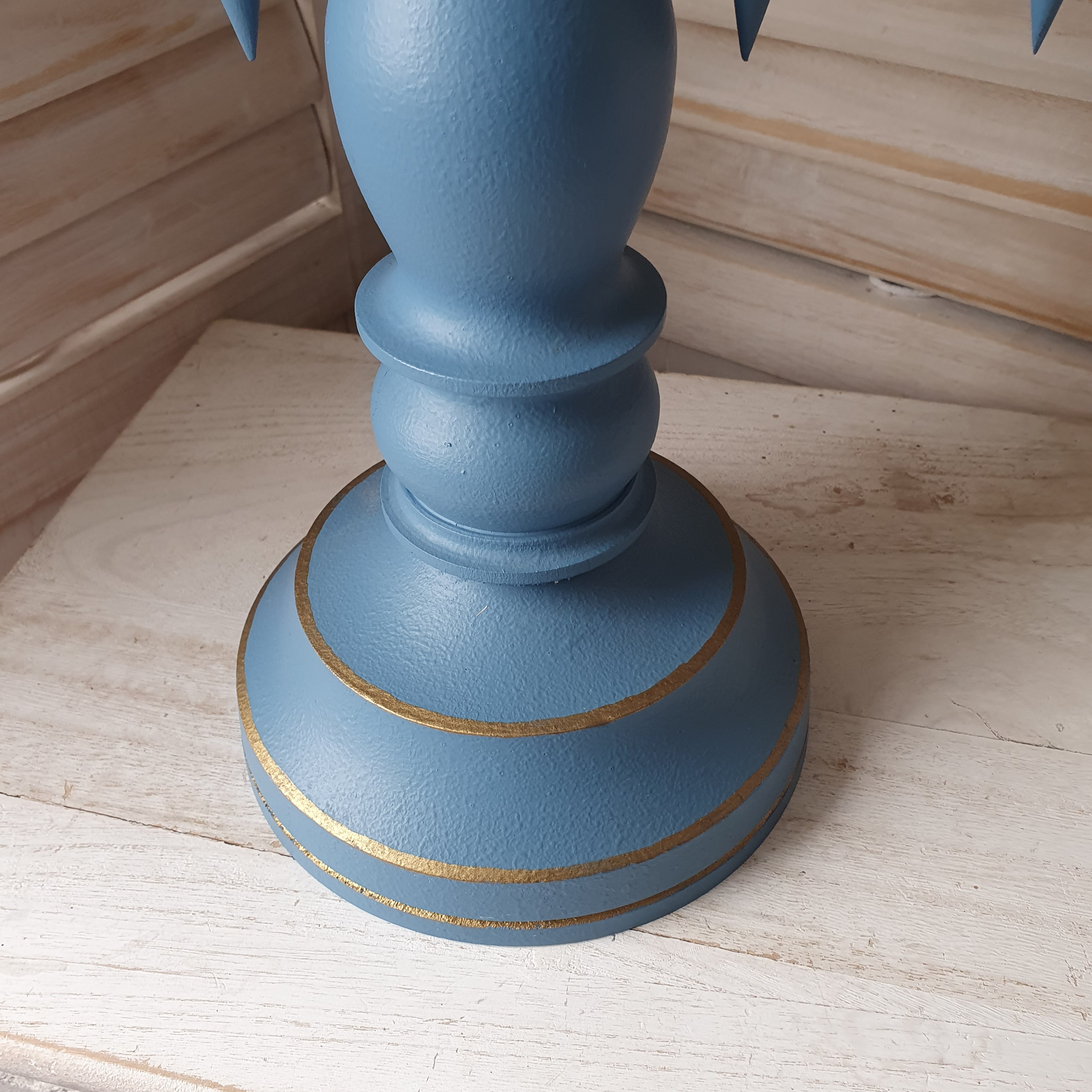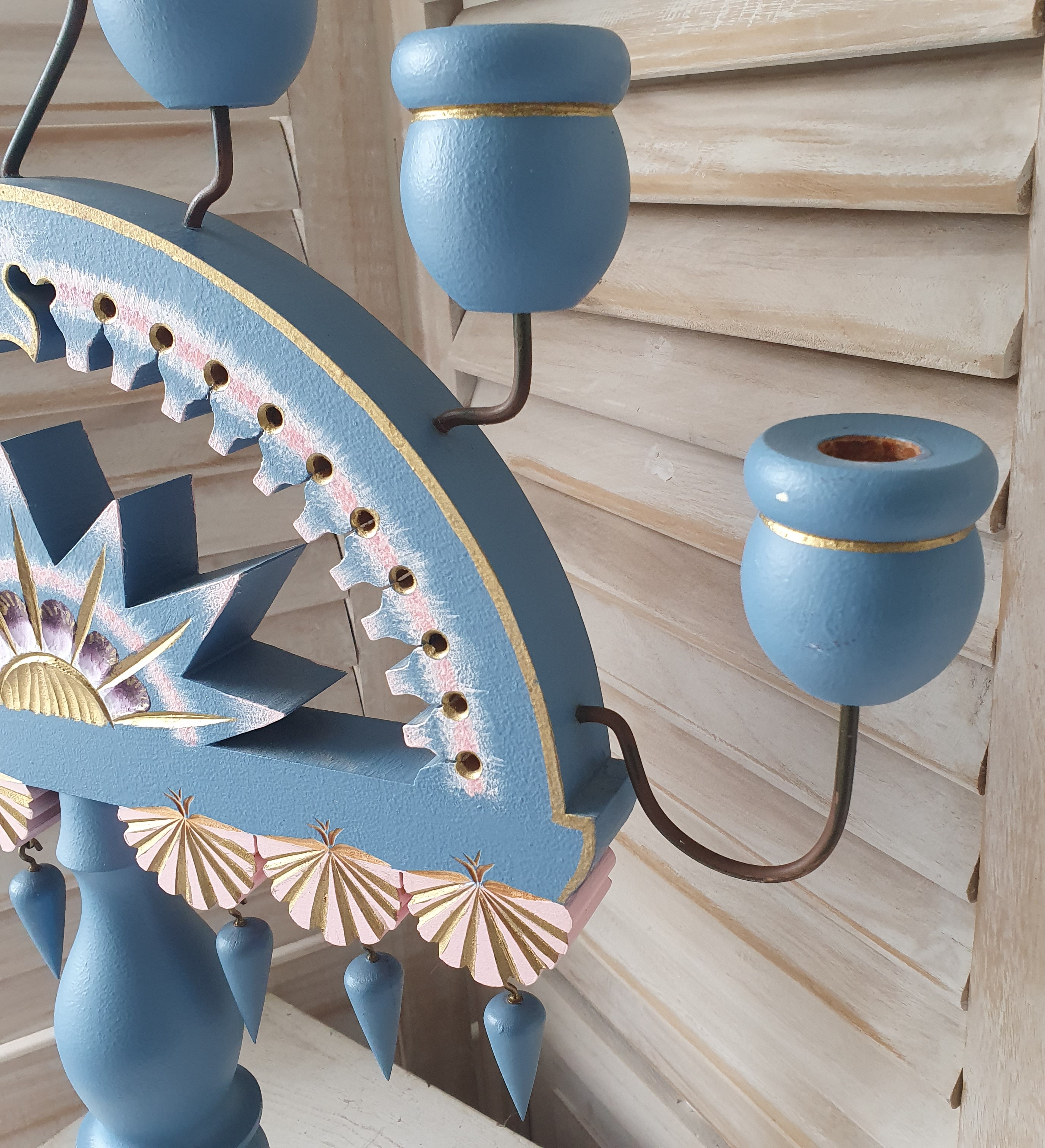 Kerzenleuchter ANCA 7 armig blau gebraucht Holz Skandinavien Kerzenhalter Weihnacht