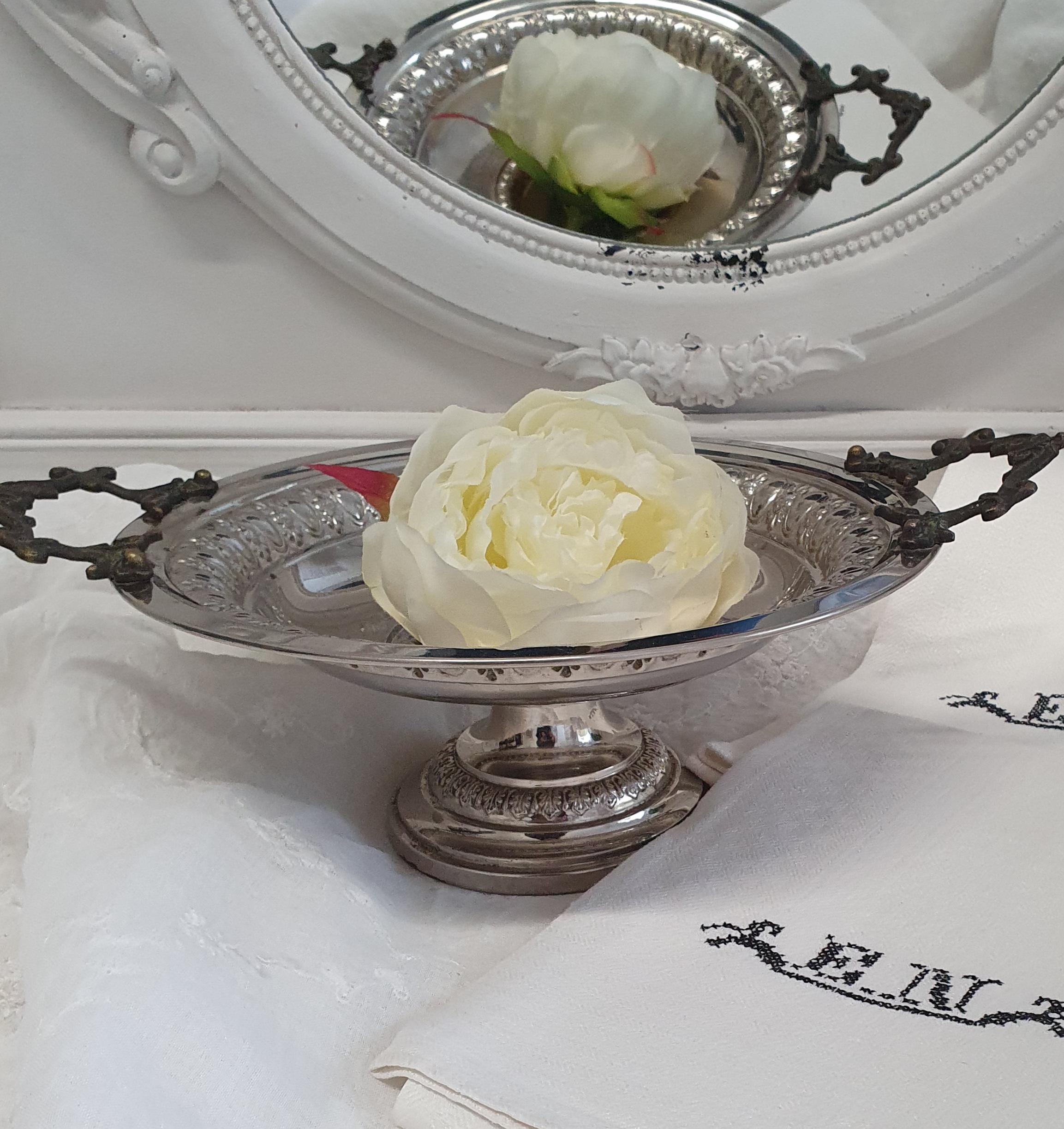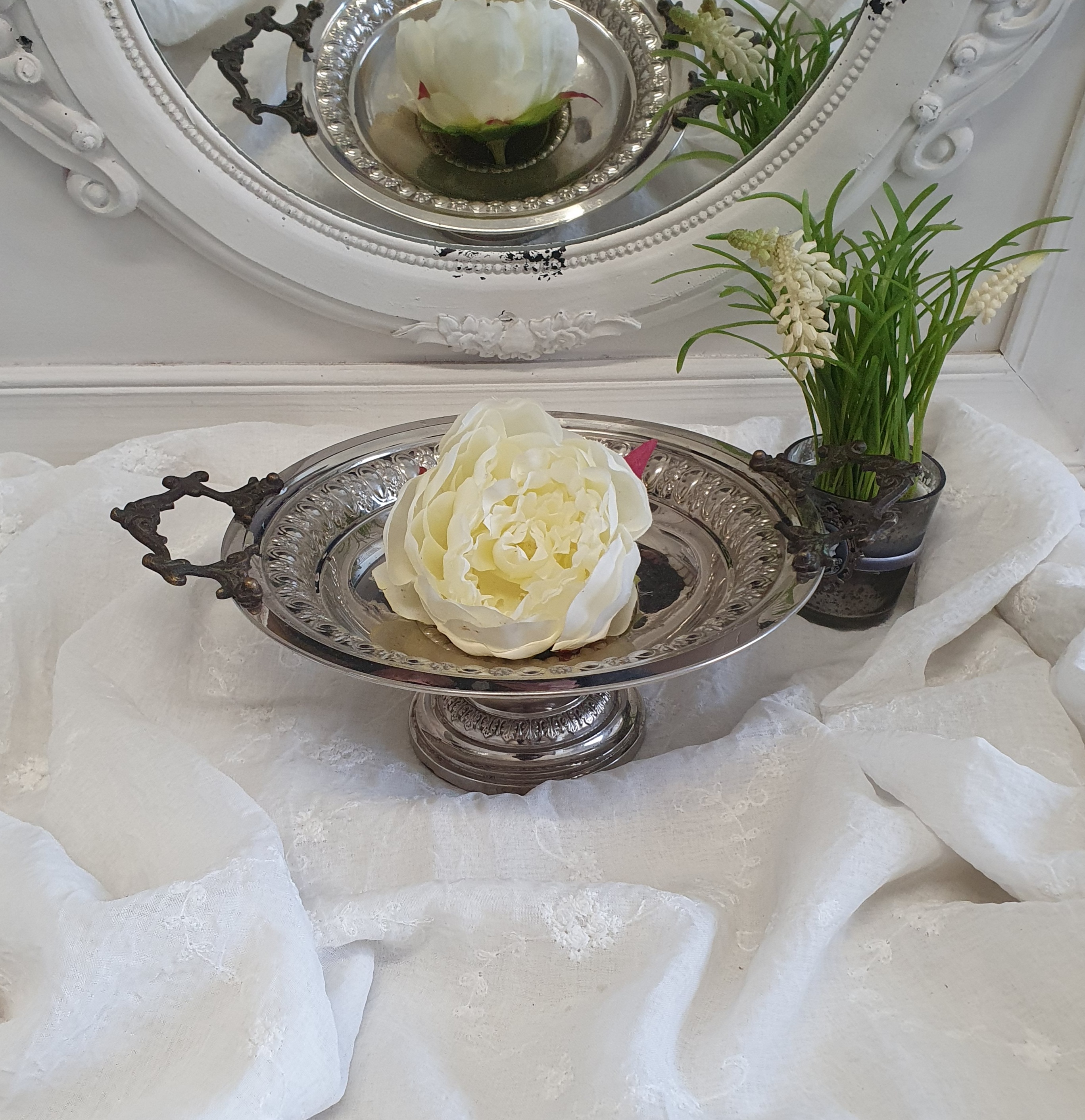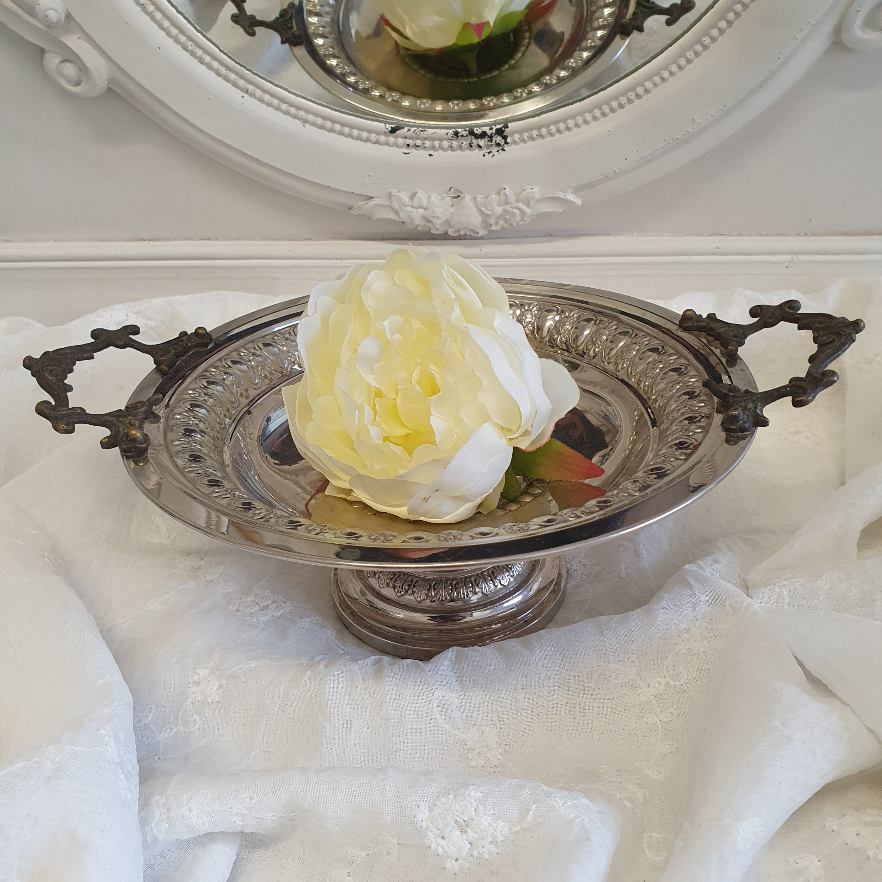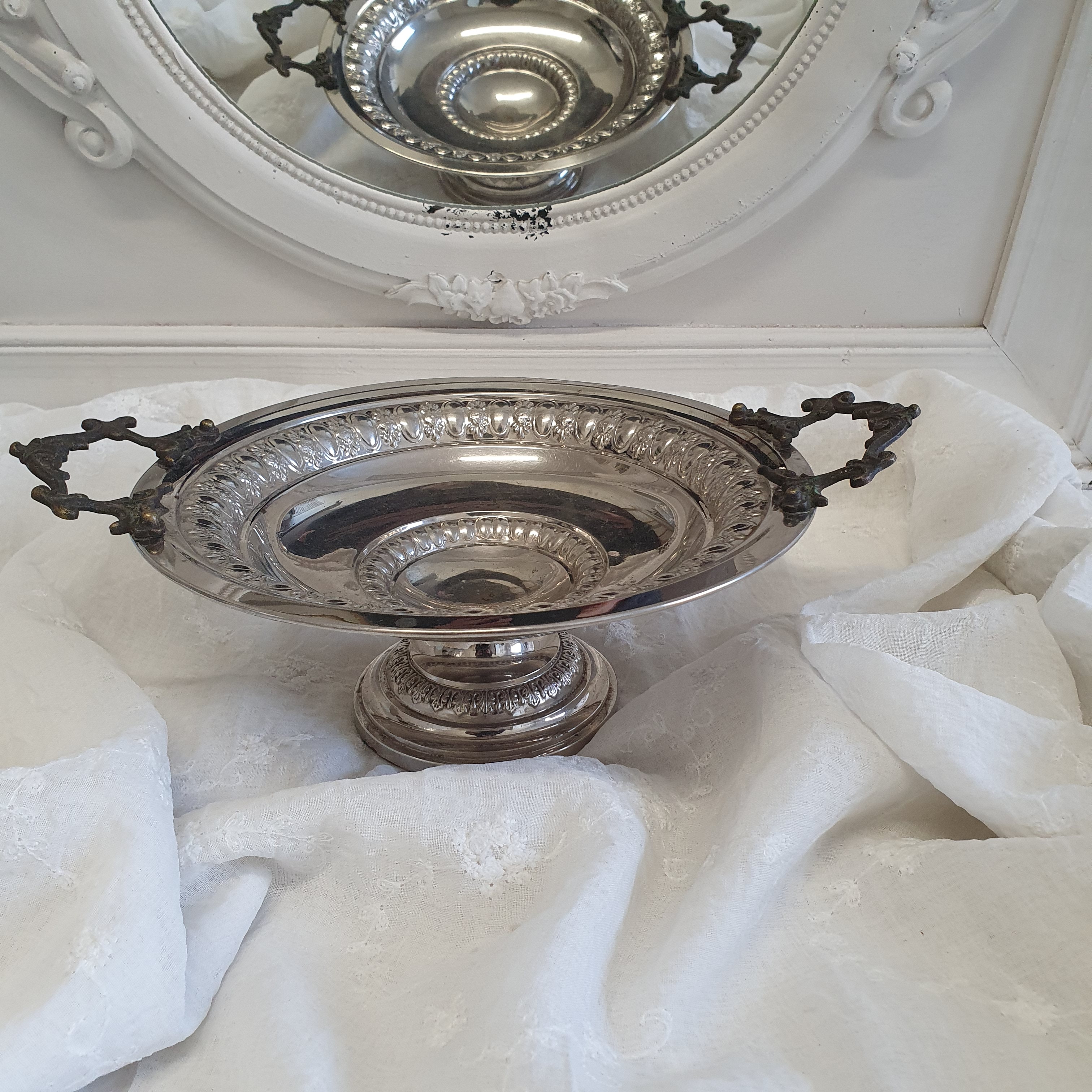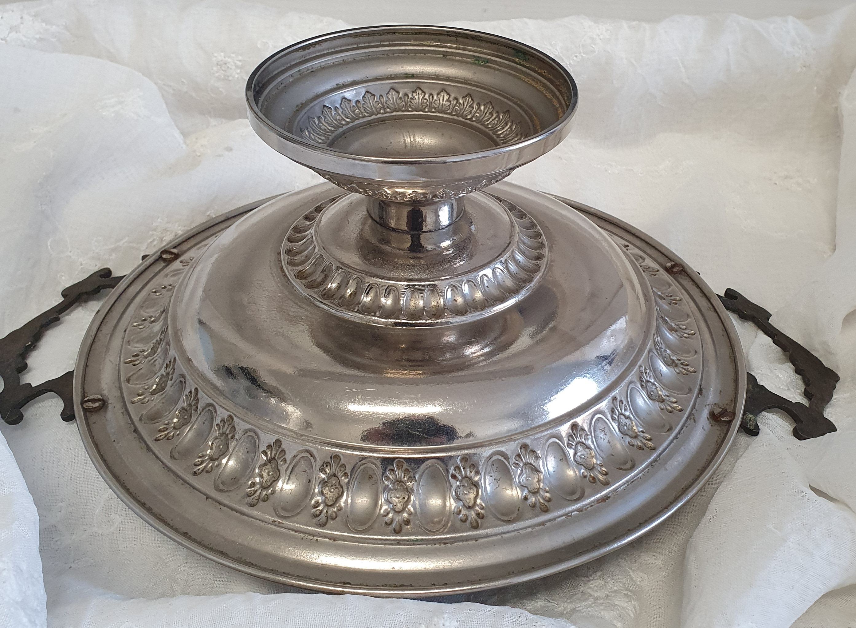 "Deko Schale Rund auf Fuß Silberfarben Antik Gebraucht Weihnachten Shabby Landhaus"