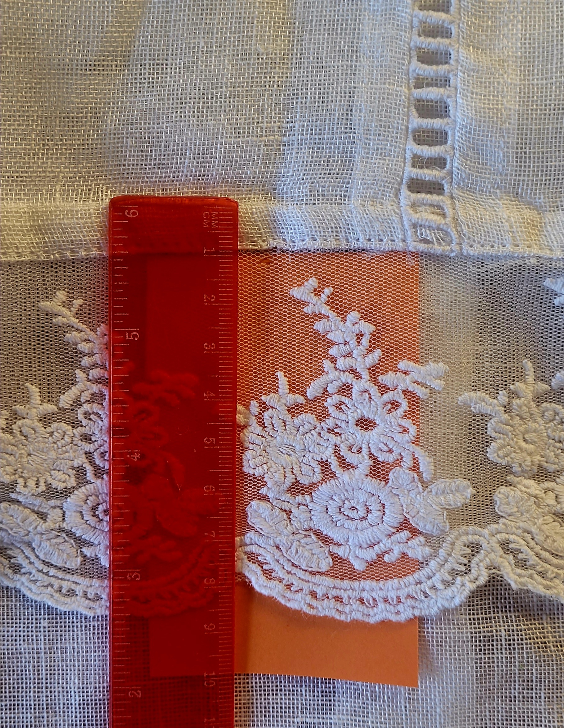 Leinengardinen mit einer Polyesterspitze: