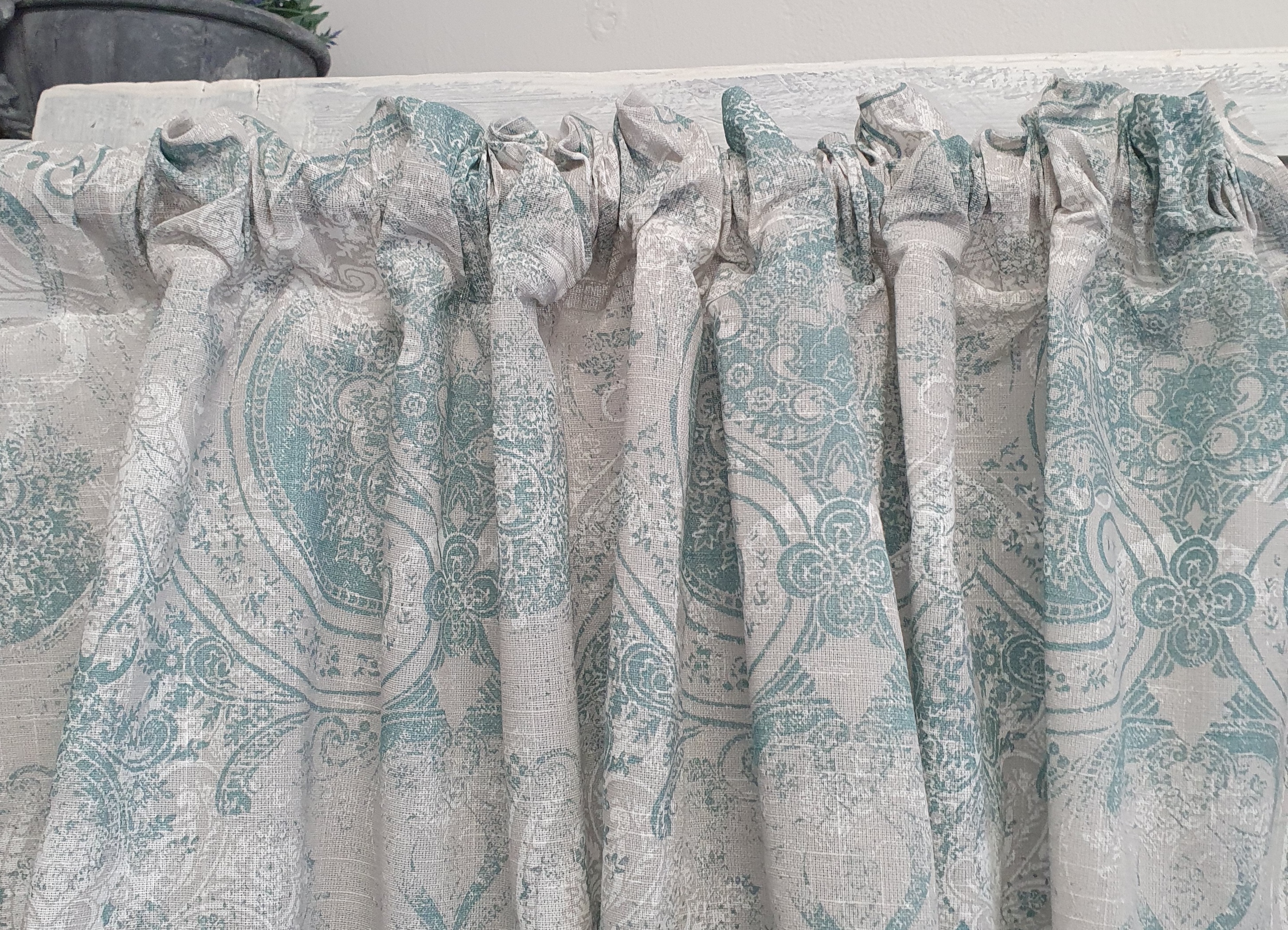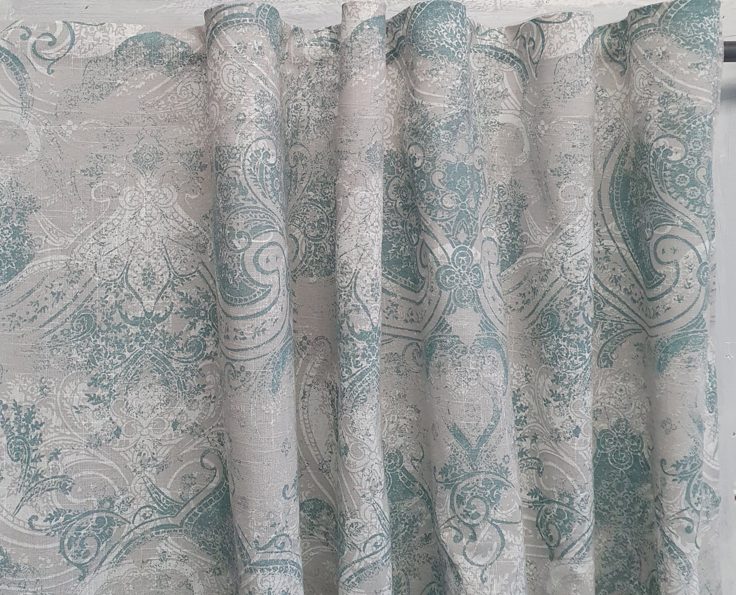 Vorhang PENNY Grün Weiß Greige NEU 115x250 cm 2 Stück Paisley Baumwolle