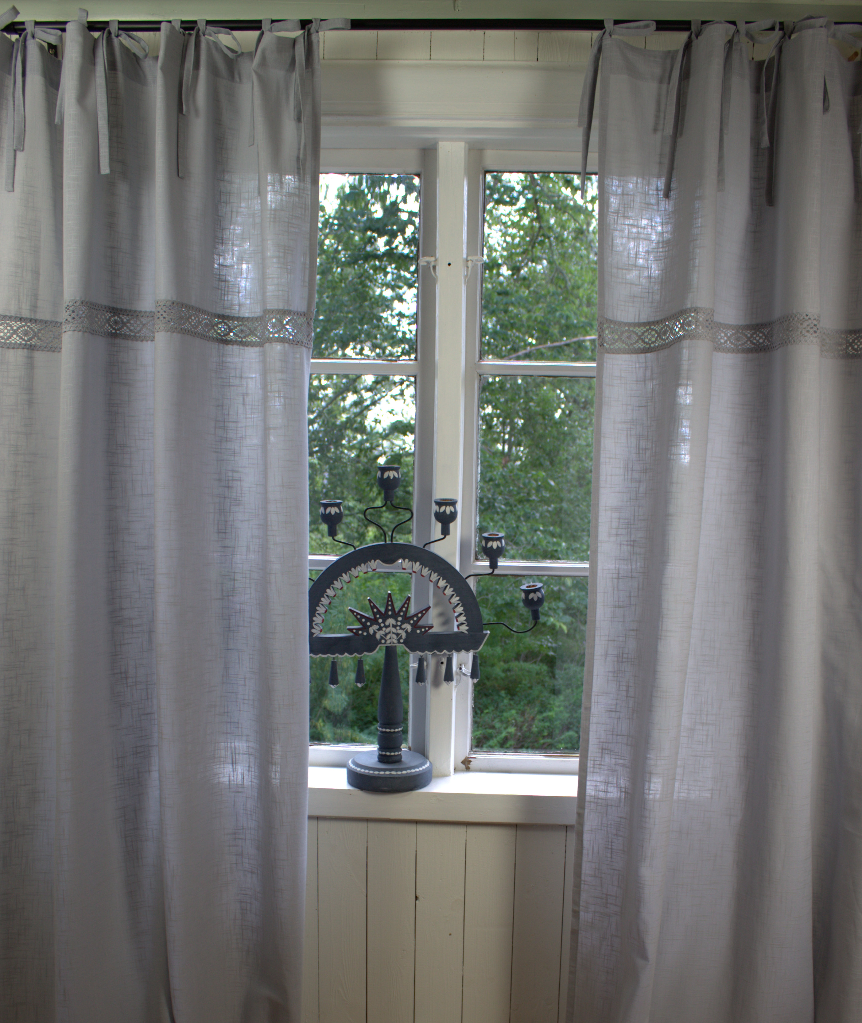 Leinengardinen mit einer Polyesterspitze: