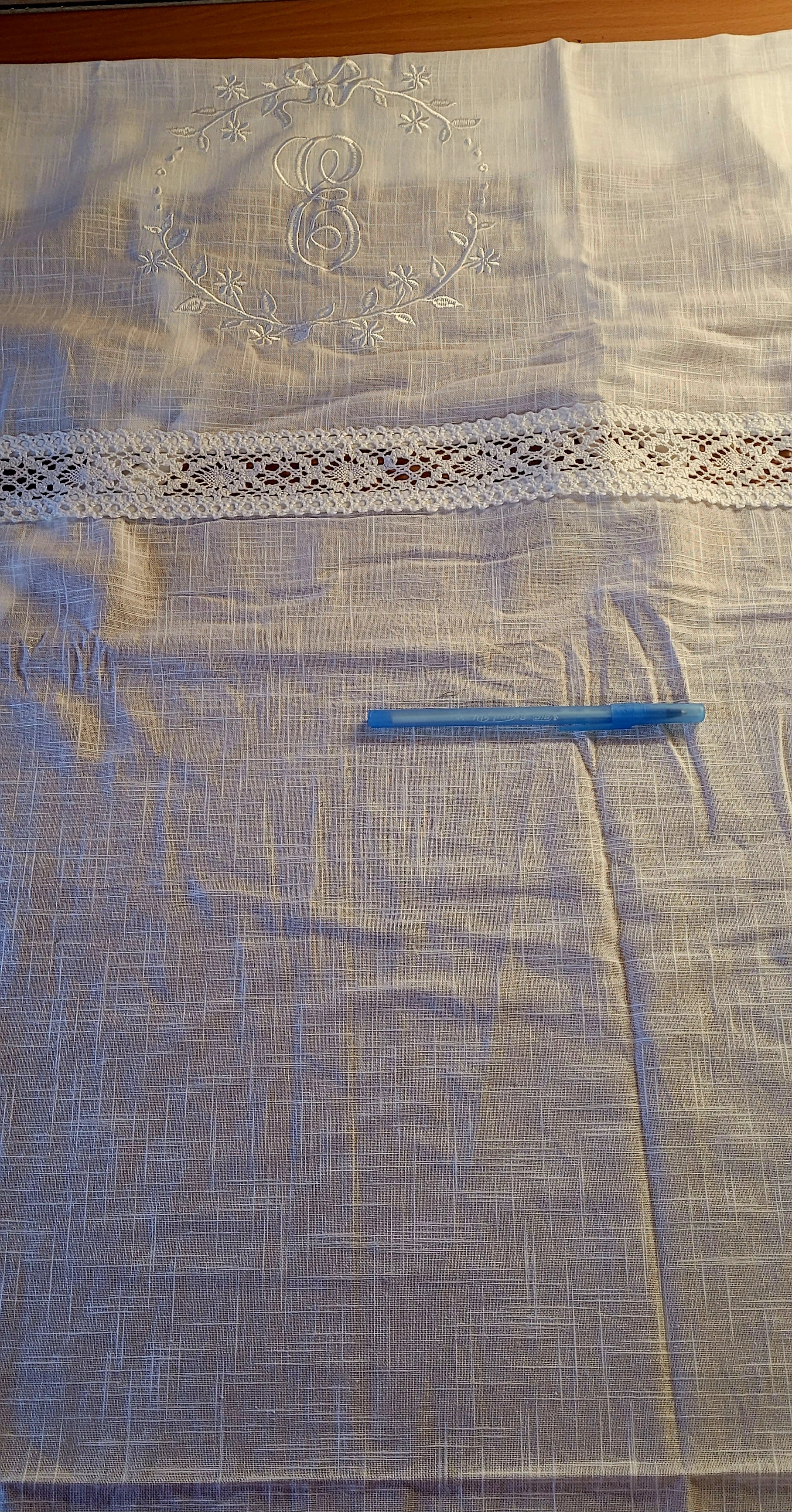 welch zauberhafte Raffgardine, französischer Landhausstil, perfekt zum Shabby Chic, Vintage Style mit einem zauberhaft aufgesticktem Monogramm ( nicht wählbar) und Kranz sowie einer Häkelspitze. Das Shabby Chic Rollo wird mit Schleifenbändern an der Gardinenstange fixiert. Die Höhe wird durch 4 Bänder, die auf der Vorder- und Rückseite angenäht sind, fixiert. Sie haben die Möglichkeit die Gardine verspielt zu drapieren oder können im unteren Tunnel einen Holzstab (nicht im Lieferumfang enthalten) einziehen, dann ist der Abschluß gerade. Der Stoff hat eine leinenartige Struktur ist handgewebt und weist an einigen Stellen kleine beigefarbene Einschlüsse auf, dies ist Bestandteil des Materials.
