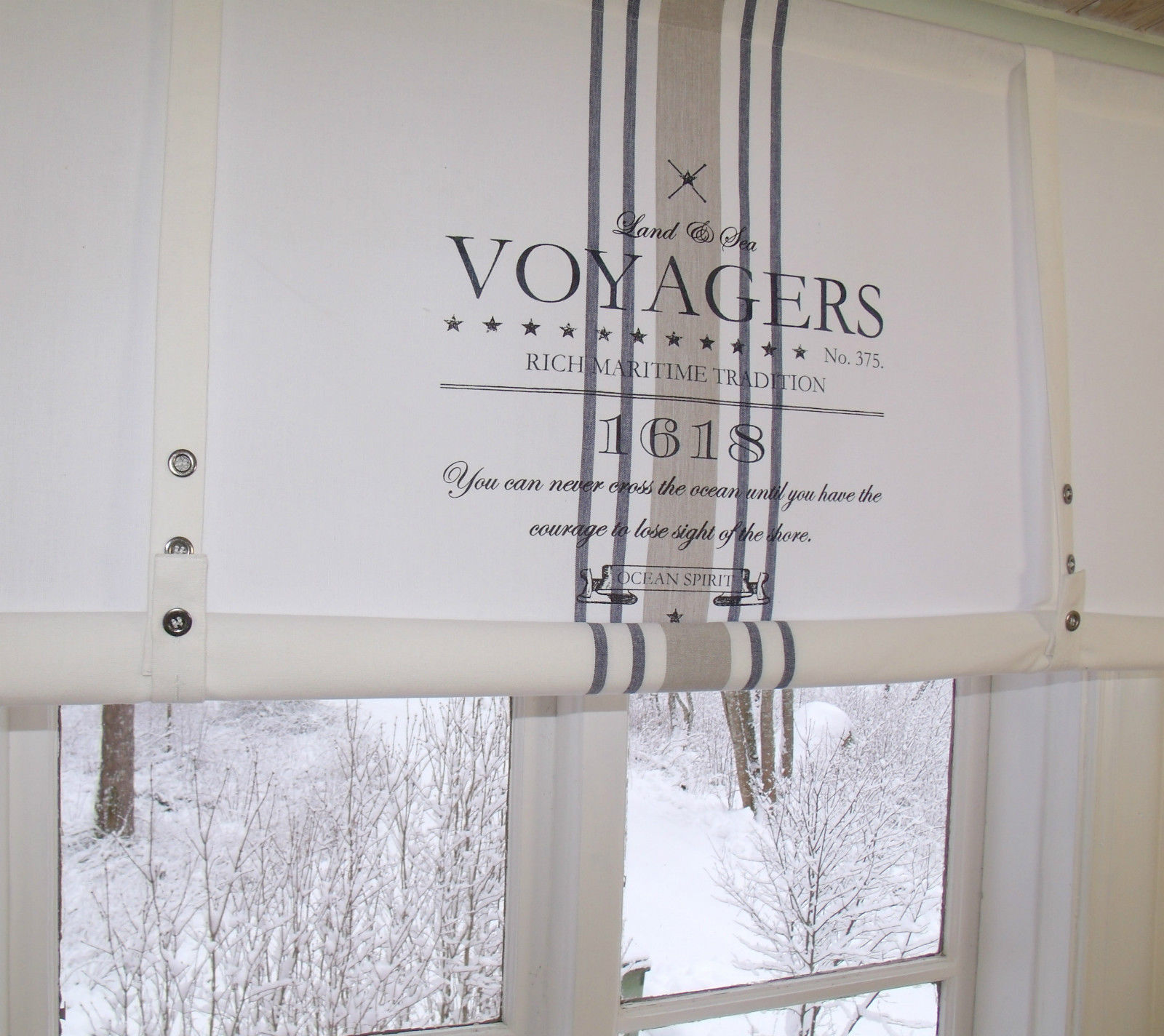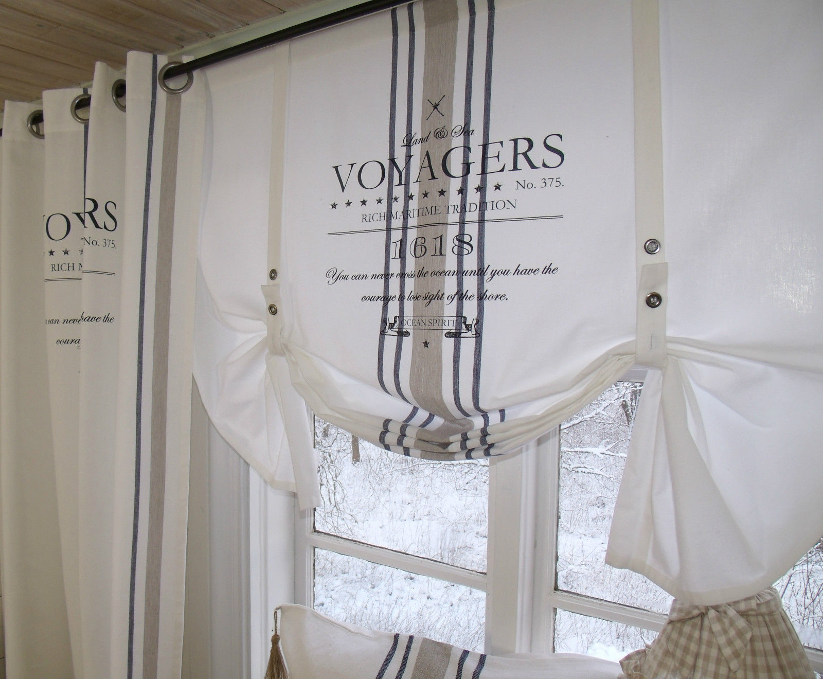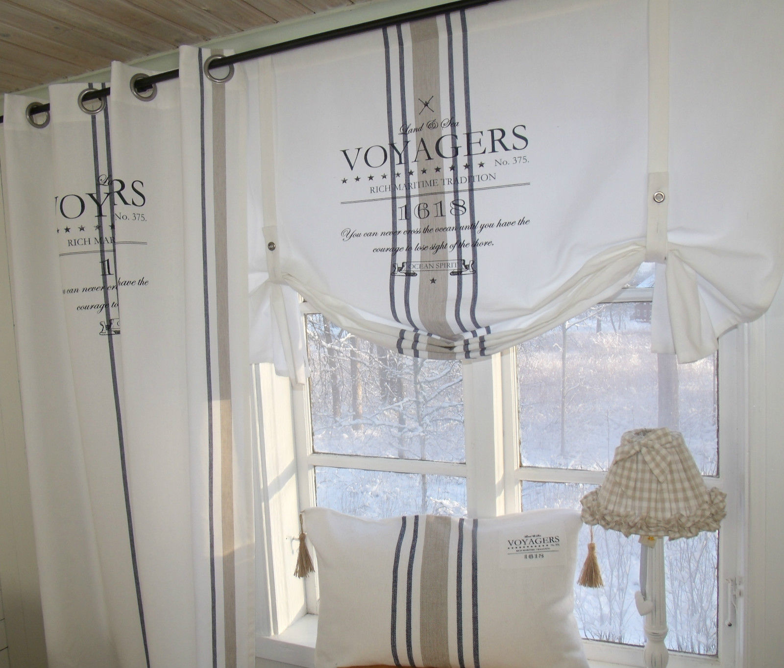 weiße ( offwhite) Baumwolle mit einem bezauberndem Druck im französischem Vintage Styl,ziert dieses traumhafte Shabby Chic Rollo . Längslaufen sand/ naturfarbene & blaue Streifen sind im Stoff eingewebt.Da der Stoff handgewebt ist, sind kleine Unebenheiten, Verdickungen Bestandteil des Stoffs und keine Fehler. Das Rollo wird durch einen Tunnel auf die Gardinenstange gezogen.Die Höhe wird durch 2 Bänder, die über die Gardinenstange gelegt werden fixiert. Die Knöpfe als Verschluß ermöglichen die Regulation der Höhe, ca. 48 cm, 51 cm oder 54 cm.Unten kann ein Holz- oder Metallstab ( nicht im Lieferprogram enthalten) in den Tunnel zur Beschwerung eingeschoben werden, dann ist der Abschluß gerade ( wie auf dem letzten Foto).