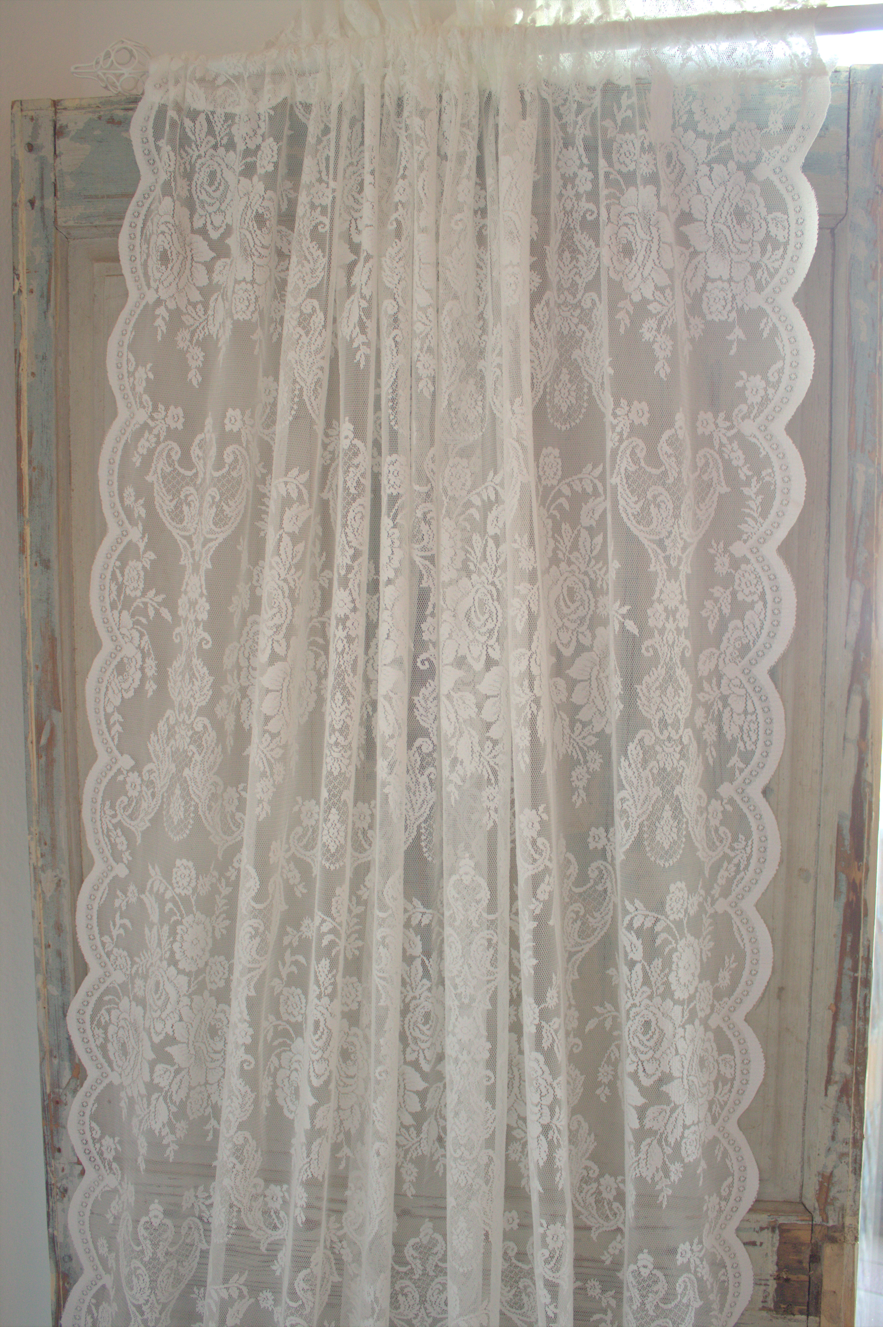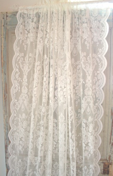 OFFWHITE LUCIA Vorhang Spitzen Gardine Rosen 120x240 cm 2 Stück Gardinenshals Landhaus Shabby Vintag
