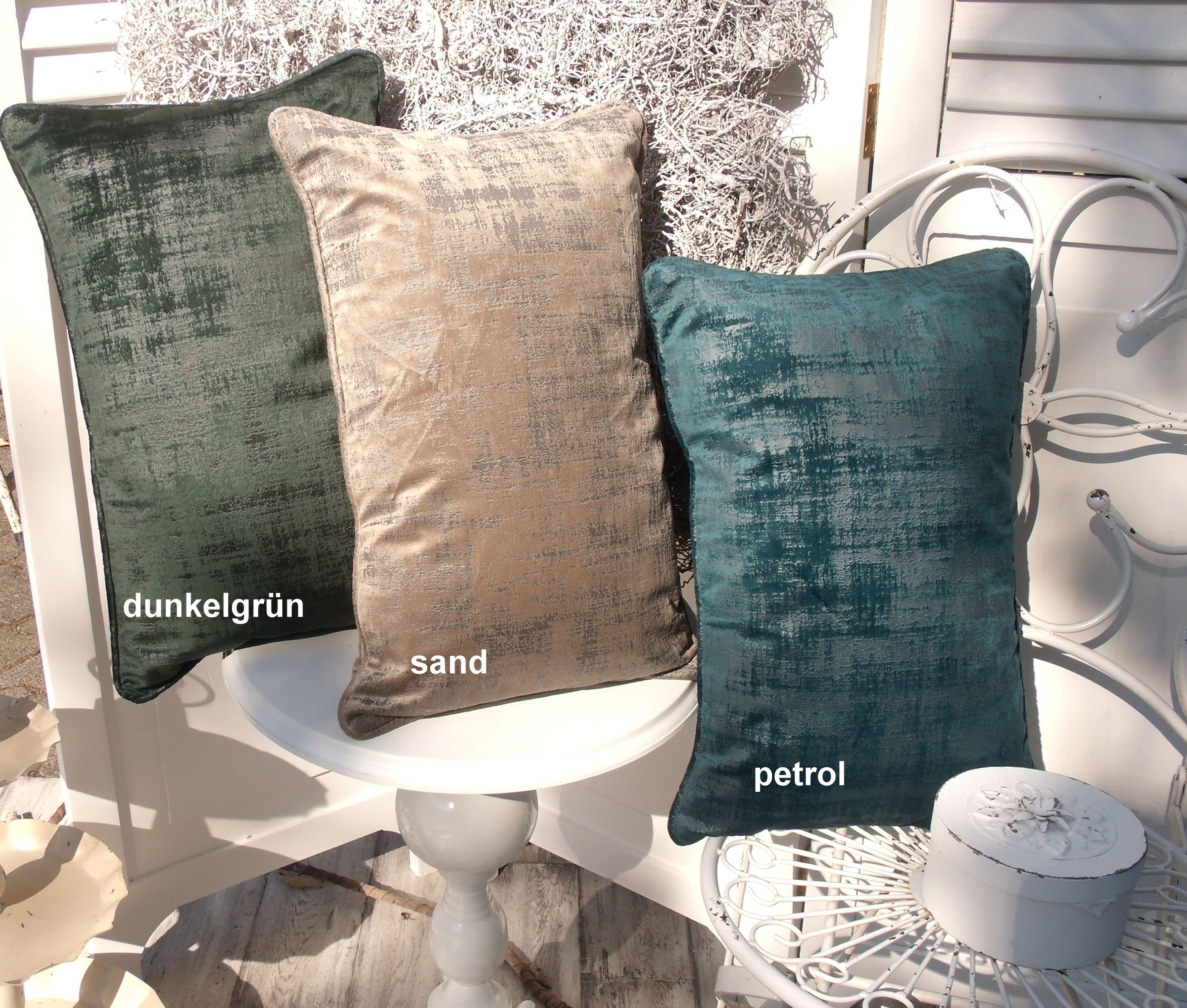 Samt Kissen Bezug Hülle CHARME 30x50 cm SAND Glanz Schimmer Polyester