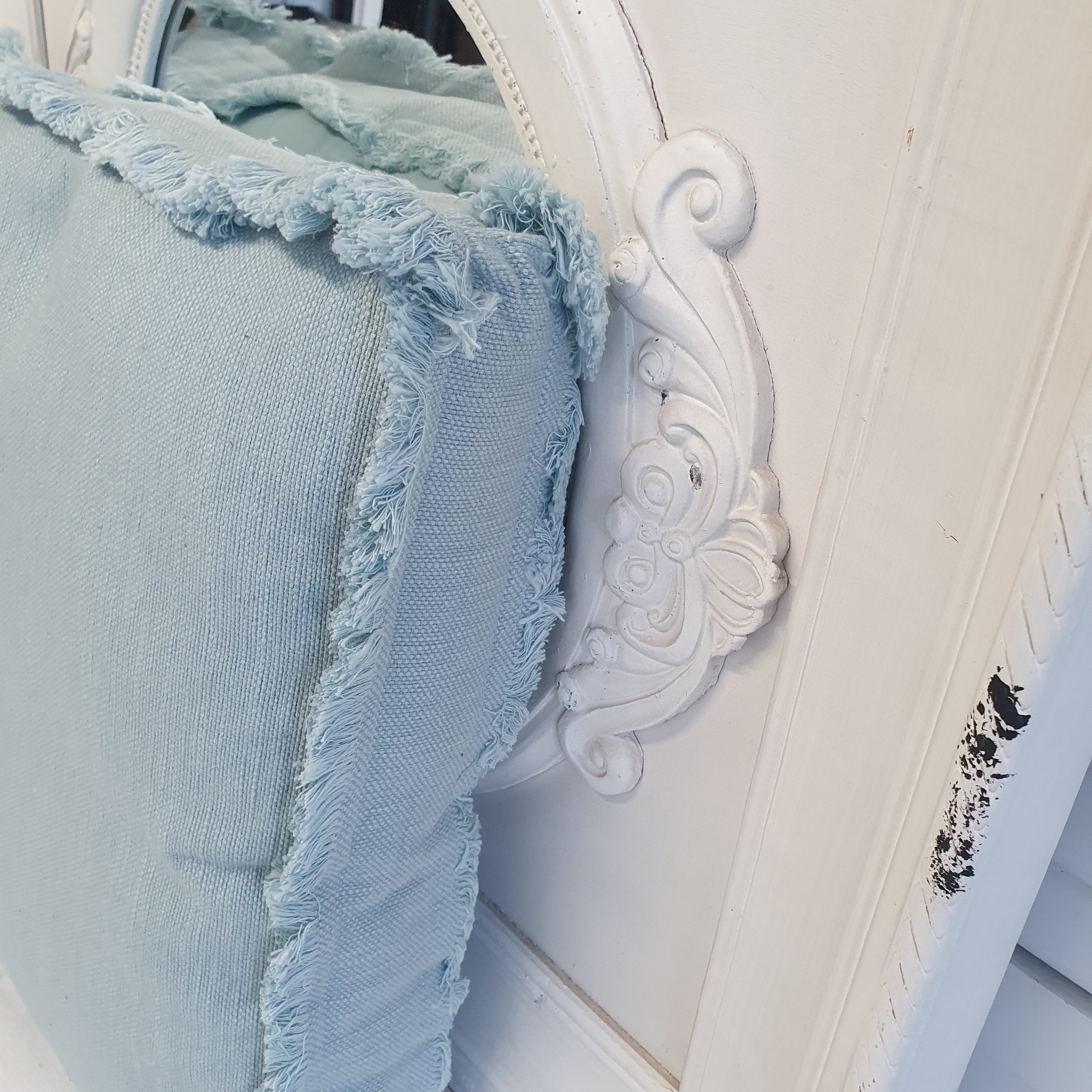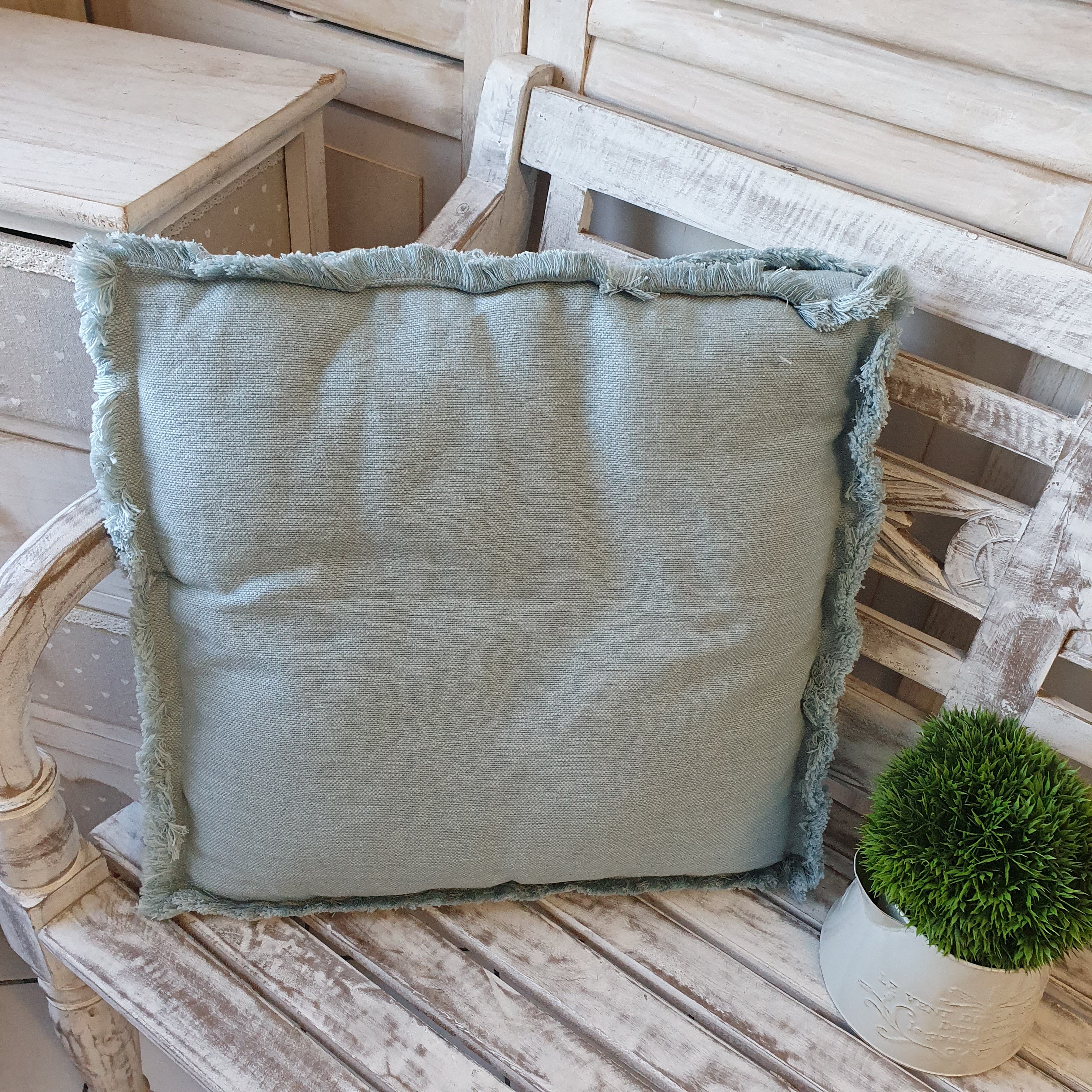 Stoffe, Kissen und Gardinen im Shabby-Chic/Landhaus-Stil sind in Handarbeit gefertigt und die Stoffe von Hand gewebt. Dadurch können z.B. Maßabweichungen, Unregelmäßigkeiten in der Webstruktur, sowie Fadenverdickungen durch Fadenanfang und -ende auftreten. Kleinere Flecken und Einschlüsse im Gewebe sind ebenfalls Ausdruck der Einzigartigkeit des Shabby-Chic-Stils und gewollt.