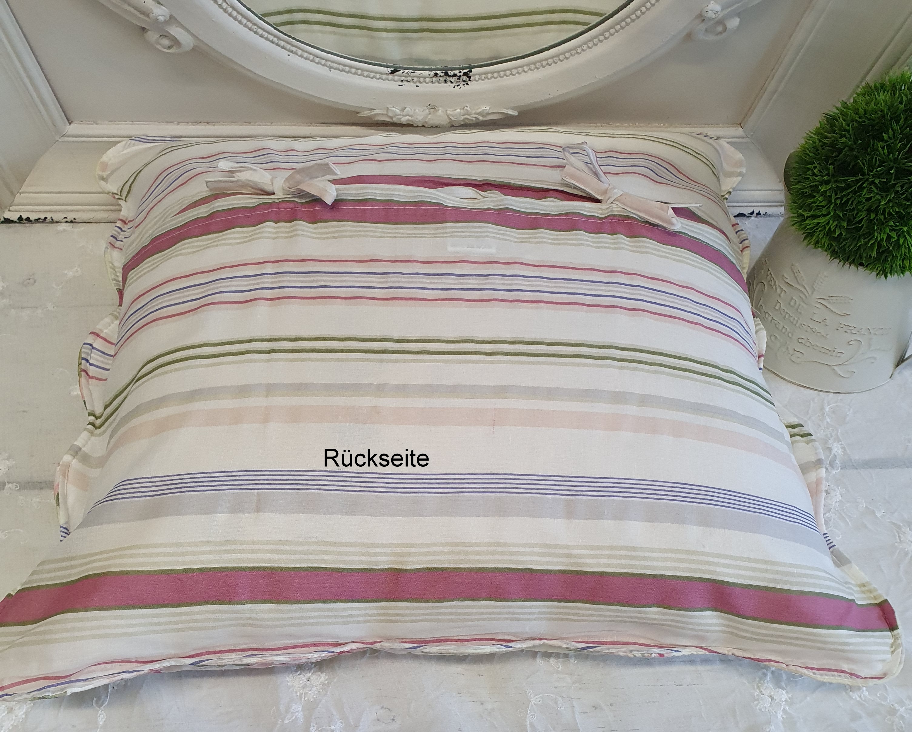 Zauberhafter Kissenbezug Paula vanillie/grünlich mit Rosen Rückseite: gestreift,... mehr