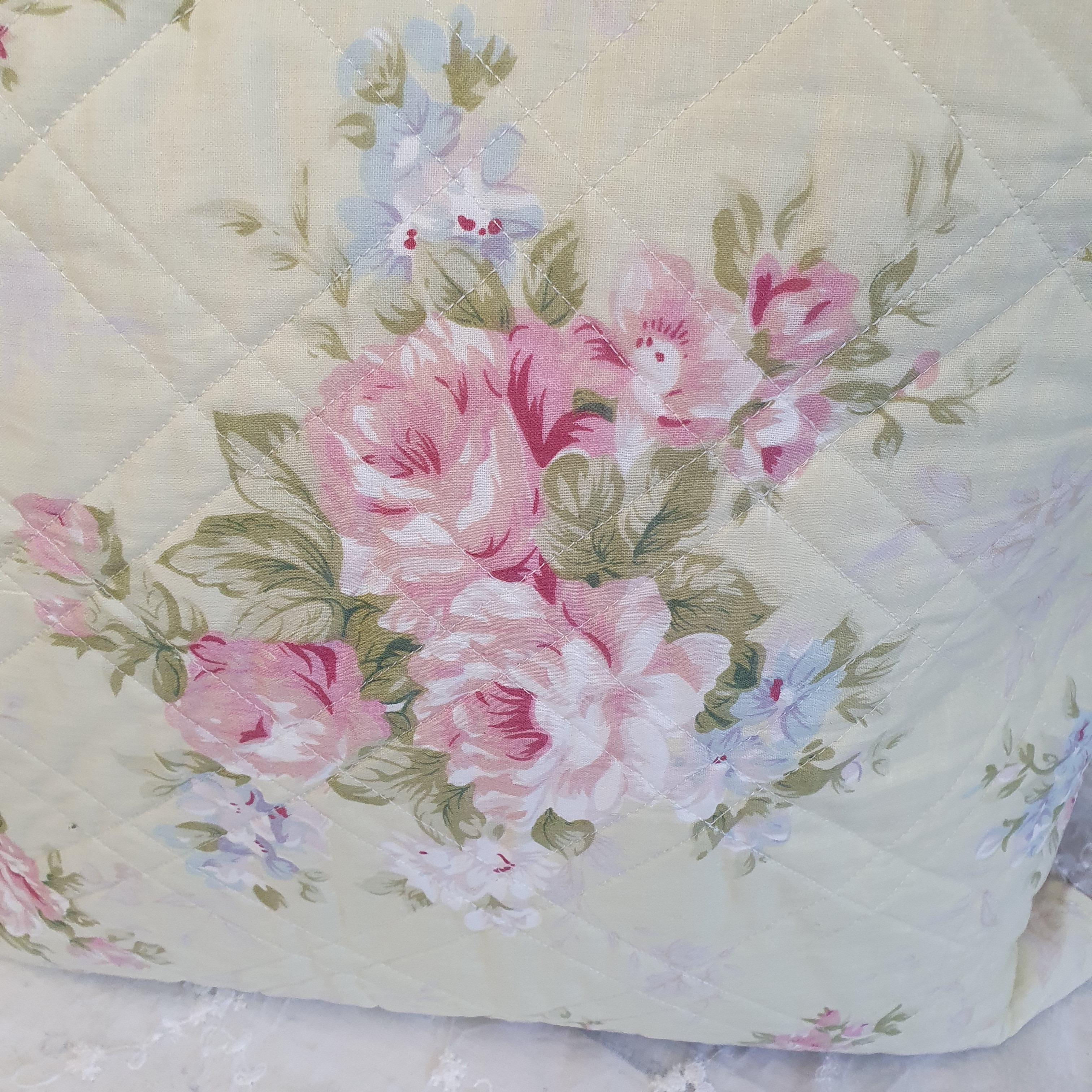 Zauberhafter Kissenbezug Paula vanillie/grünlich mit Rosen