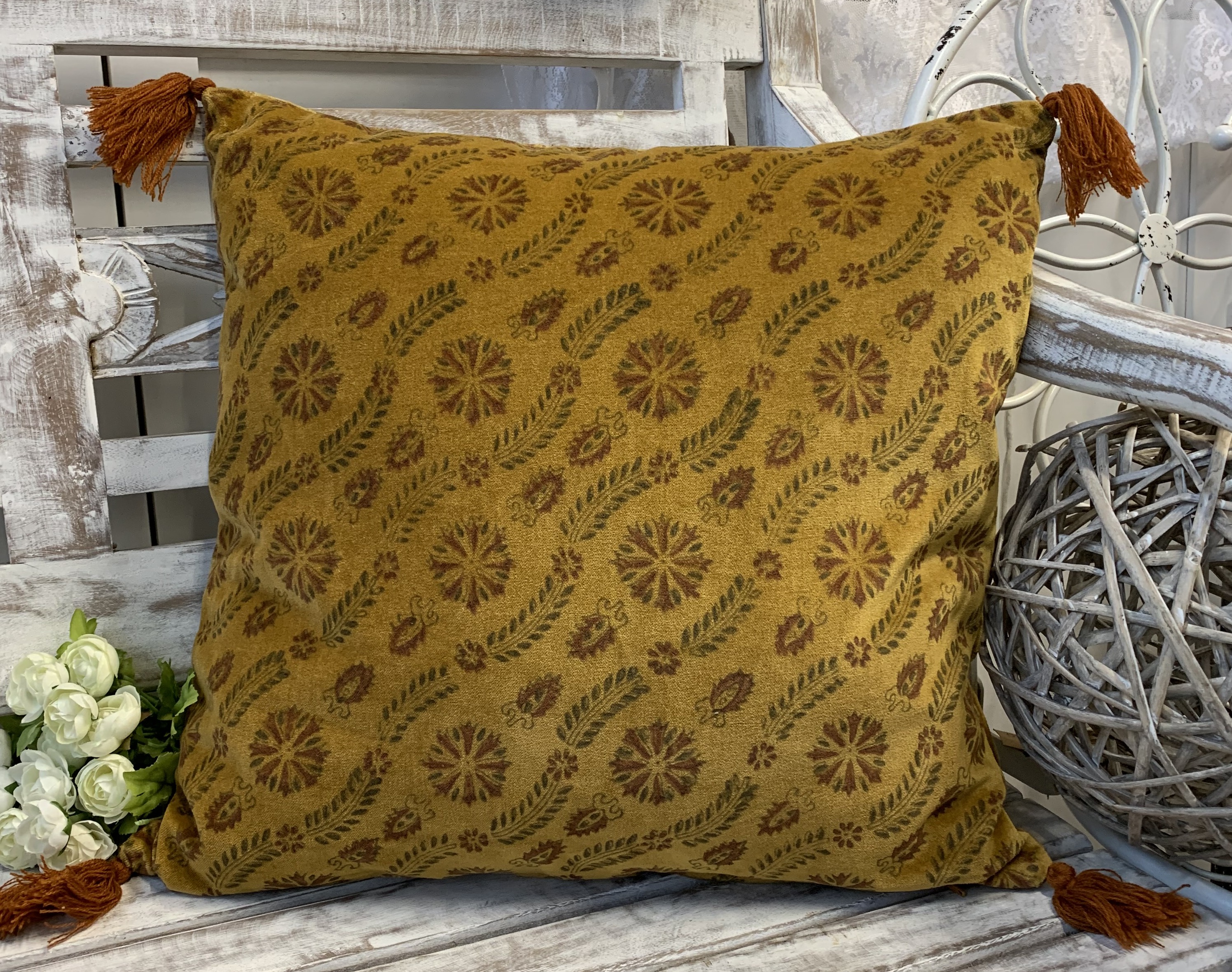 Kissen Bezug Hülle MINA Safran 45 x 45 cm Samt Baumwolle Quasten Landhaus