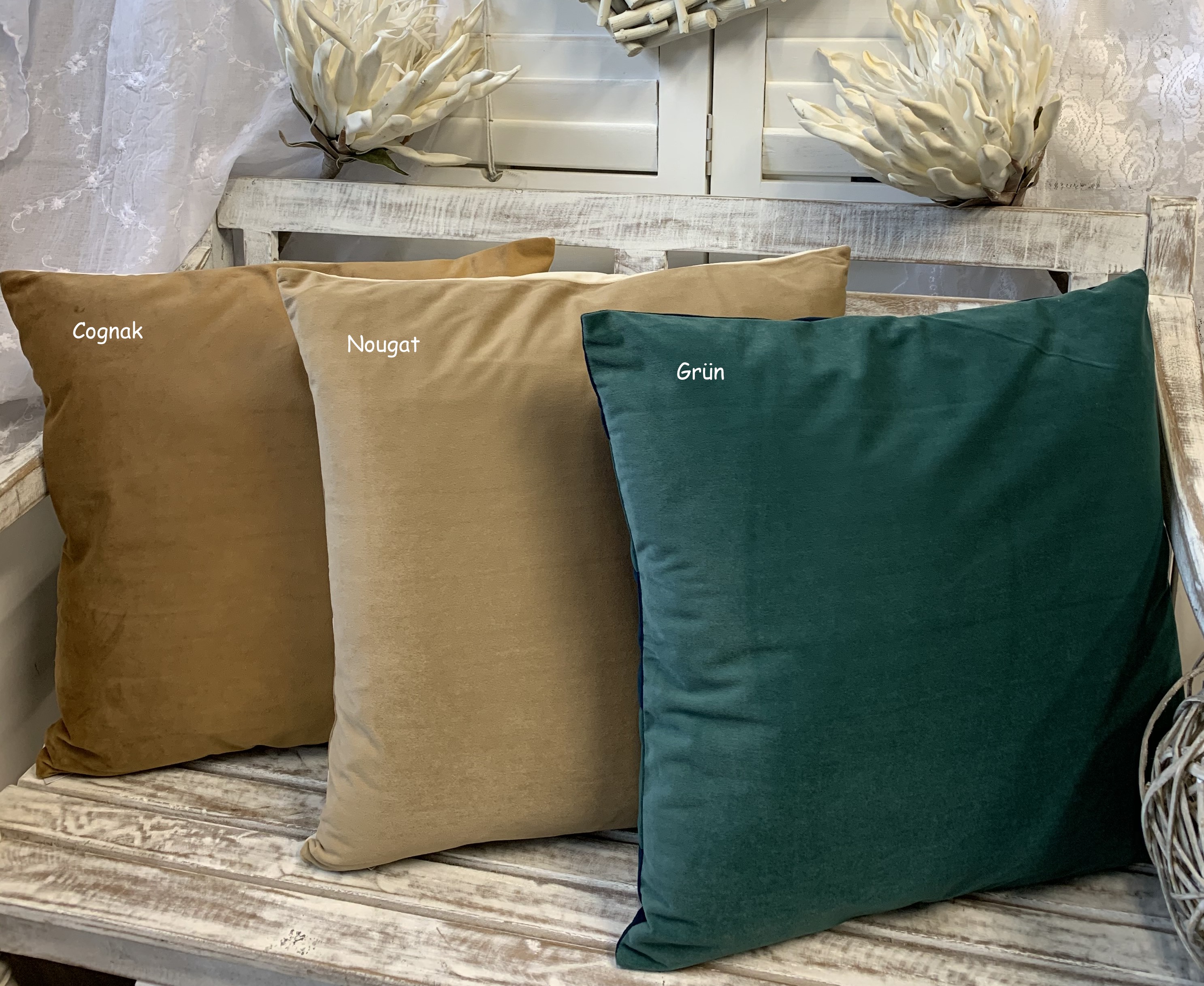 Kissen Bezug Hülle DANNY Cognak Offwhite 50 x 50 cm Samt Polyester Landhaus
