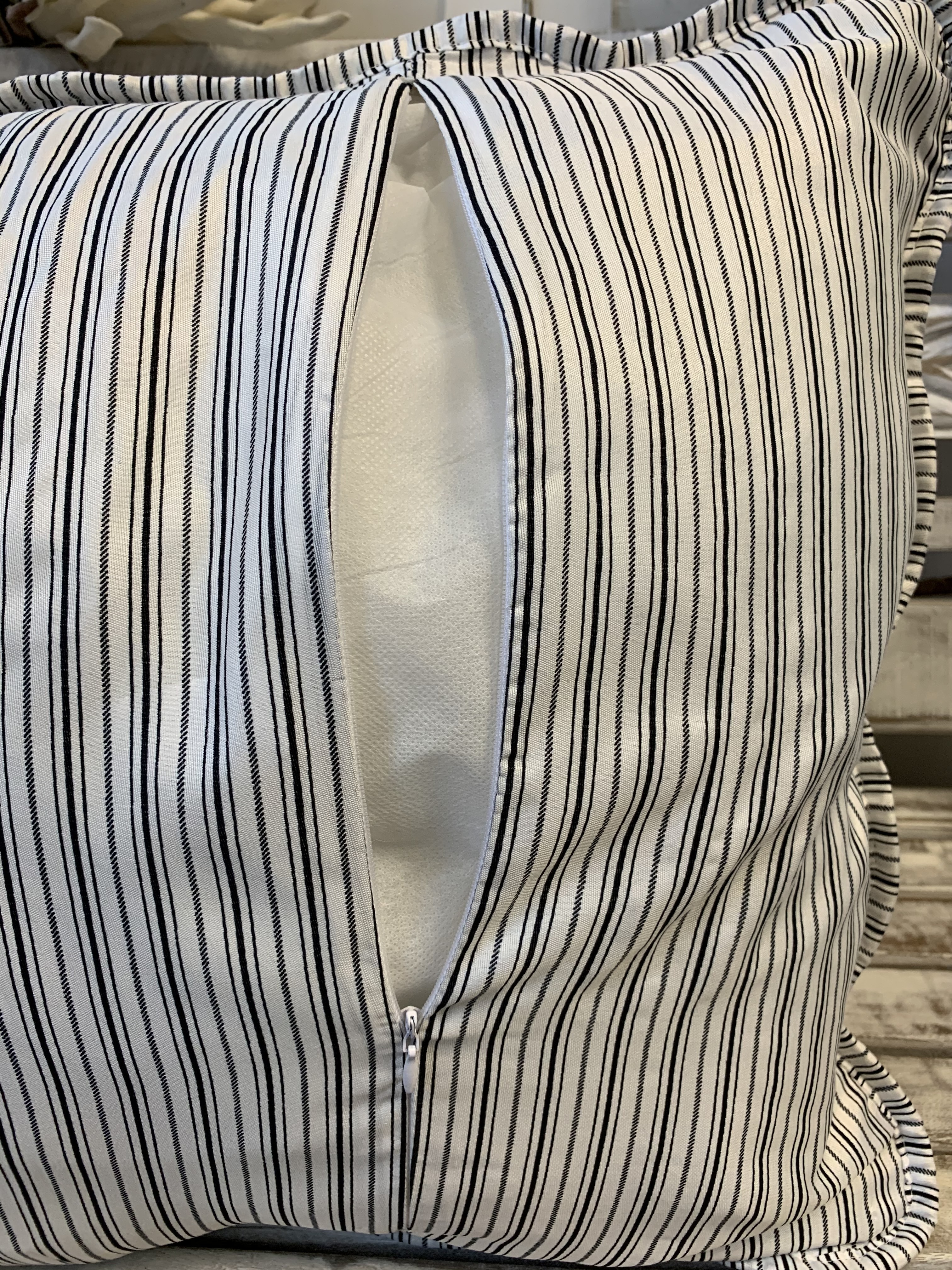 Kissen Bezug Hülle INES Blau Offwhite Gestreift 50 x 60 cm Polyester Microfaser Landhaus