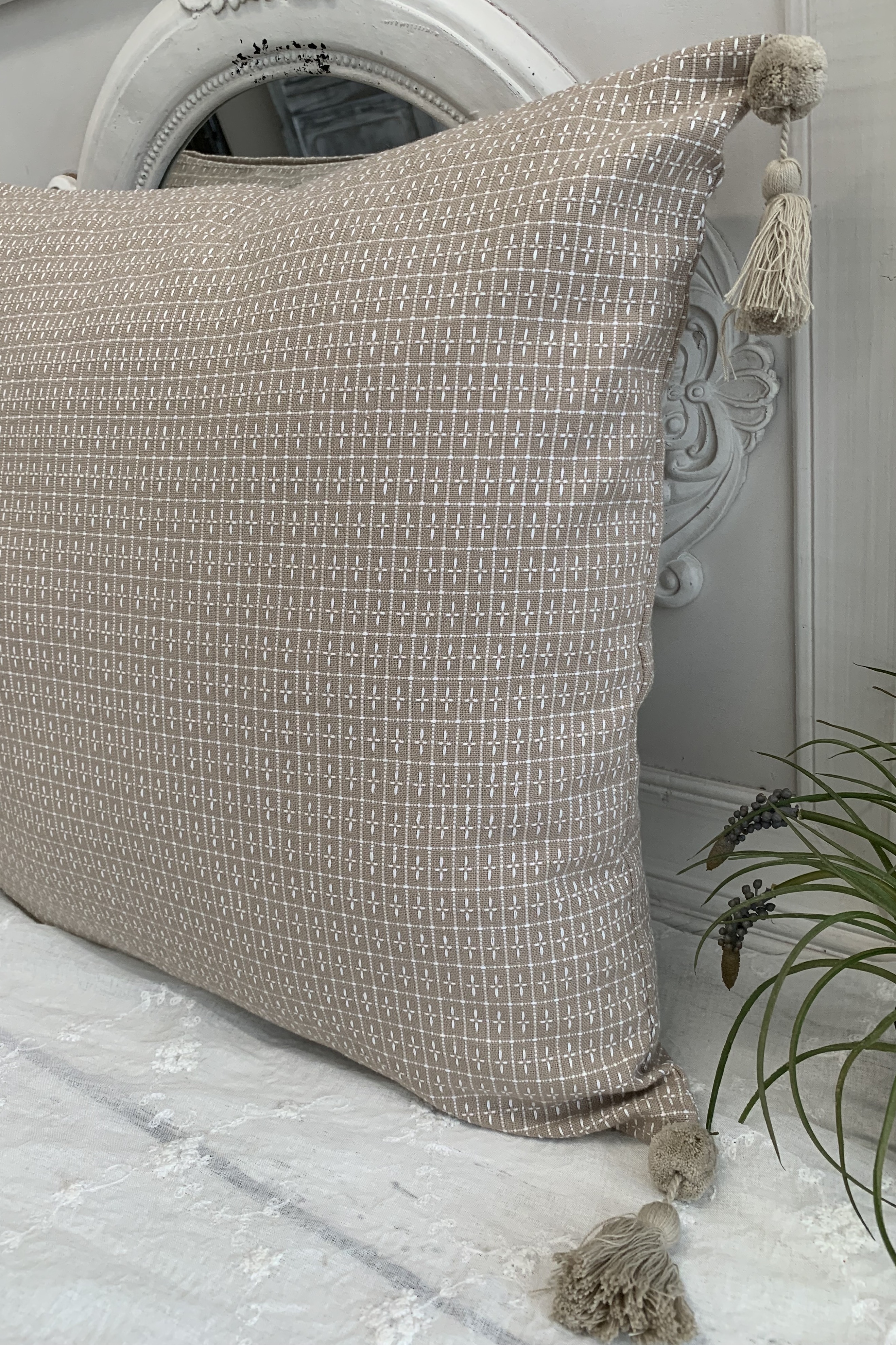 Kissen Bezug Hülle SISSI Sand Weiß 48 x 48 Baumwolle Quasten Troddeln Landhaus