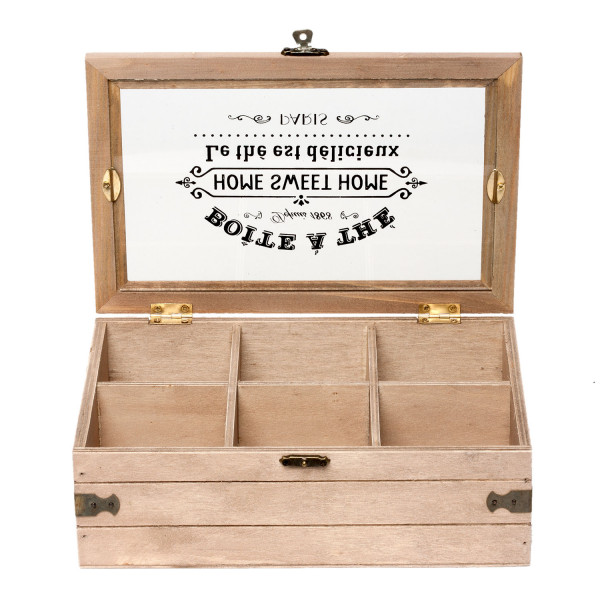 6 Fächer, viel Platz für Tee, Kaffeepads, eine zauberhafte Dekokiste.