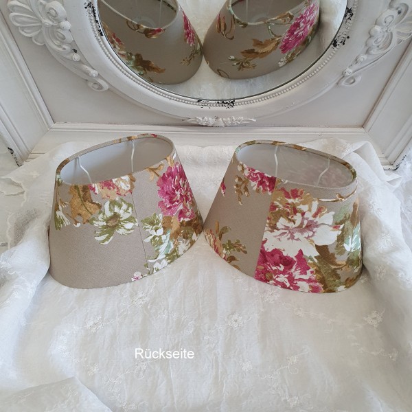 Traumhafter Lampenschirm *Eileen* im klassischem Stil, Dieser hochwertige, elegante Lampenschirm unterstreicht das edle Design. Ein bezaubernder Stofflampenschirm in der Farbgebung taupe mit einem imposanten Blumenaufdruck in der Farbgebund grün, braun/taupe, weiß und rose.