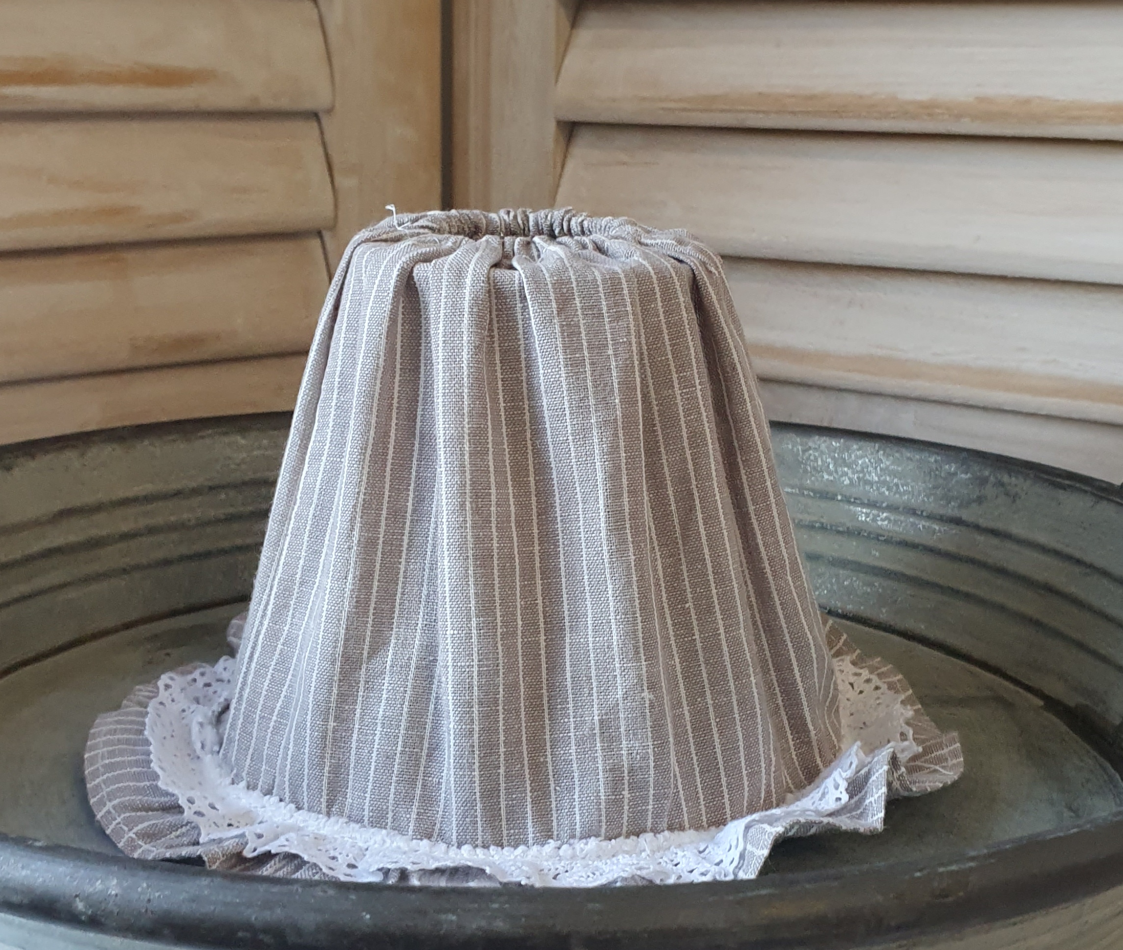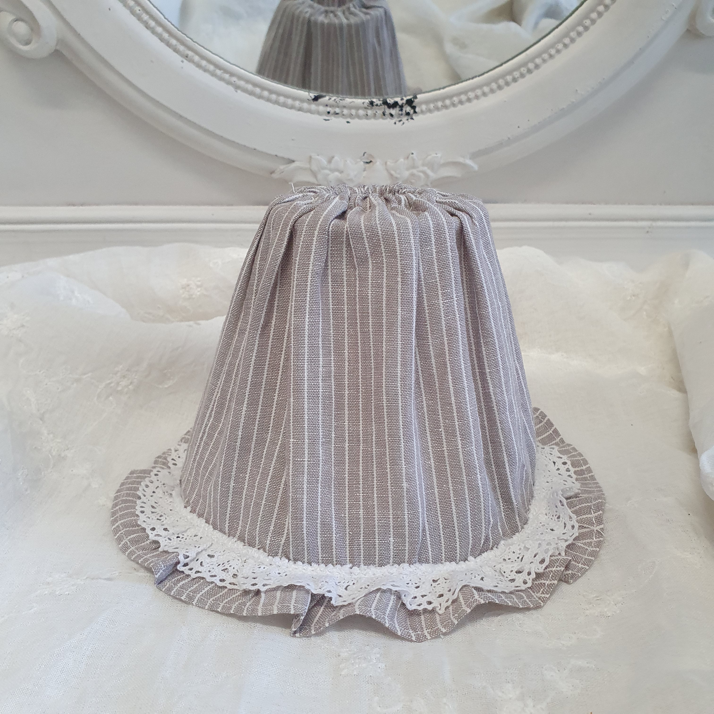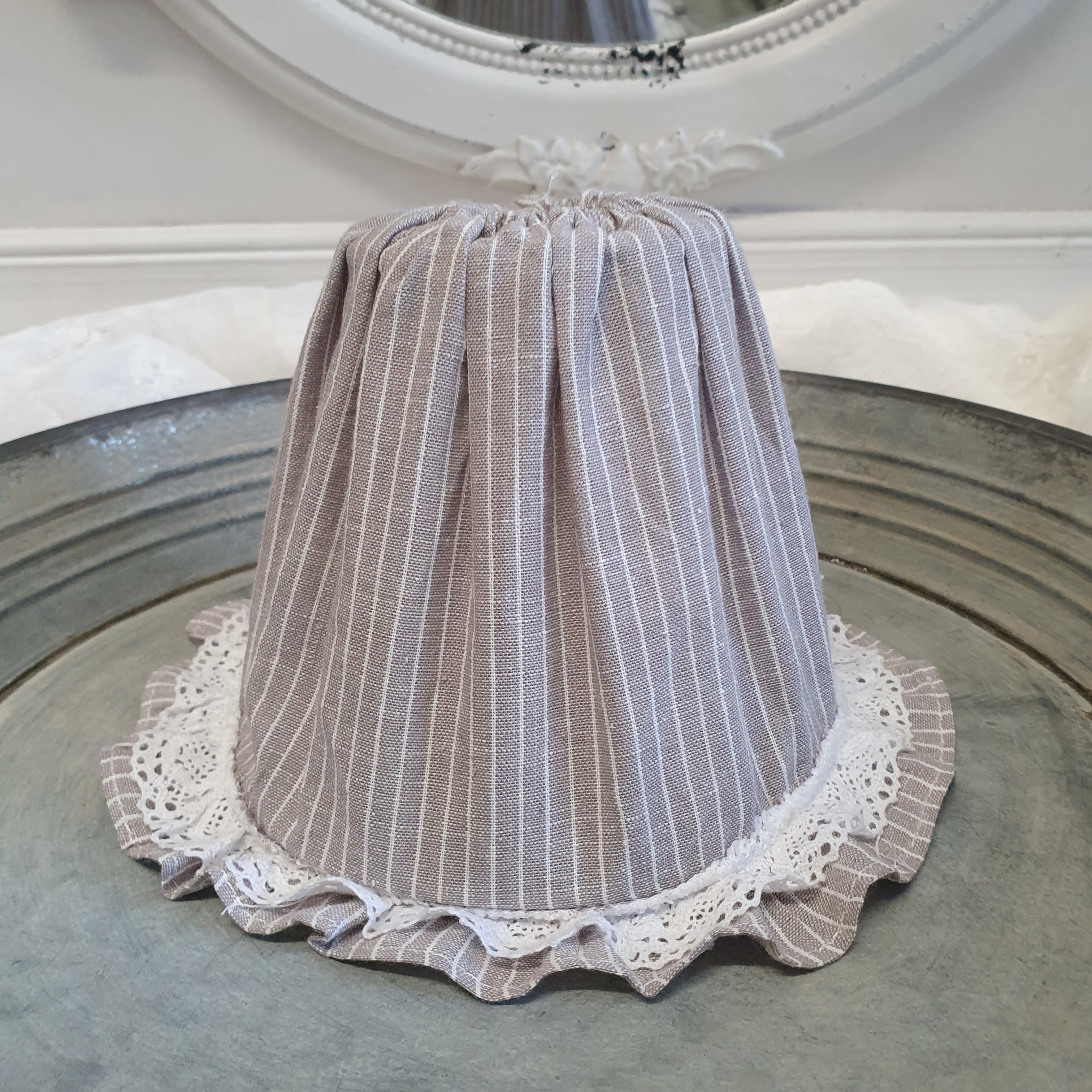 Lampenschirm LYDIA Stoff Grau Streifen Spitze Landhaus