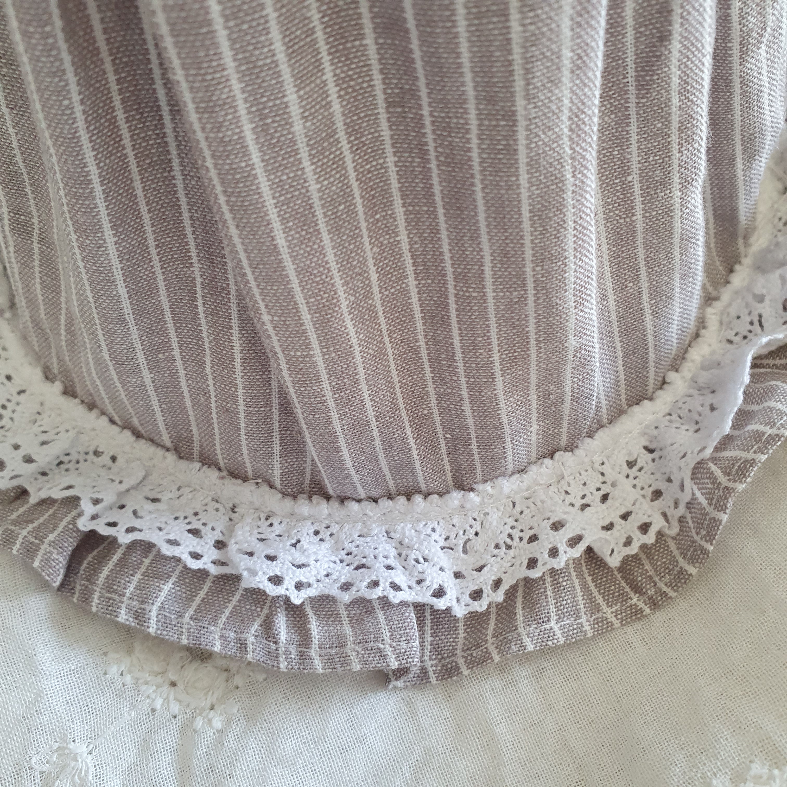 "Lampenschirm LYDIA Stoff Grau Streifen Spitze Landhaus"