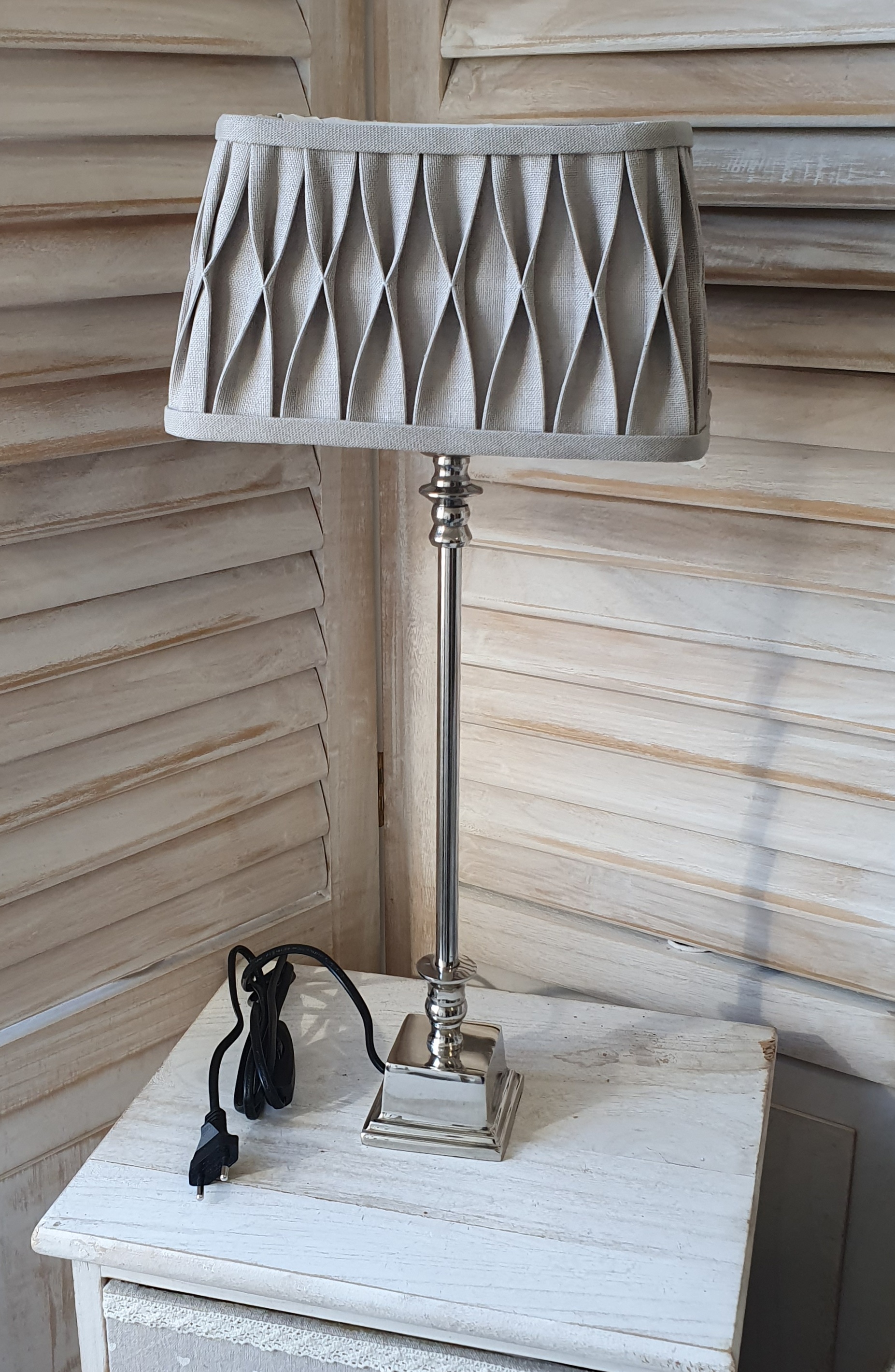 Designer Tischlampe EDEL Sand Stoff oval E27 25-21-14 rechteckig