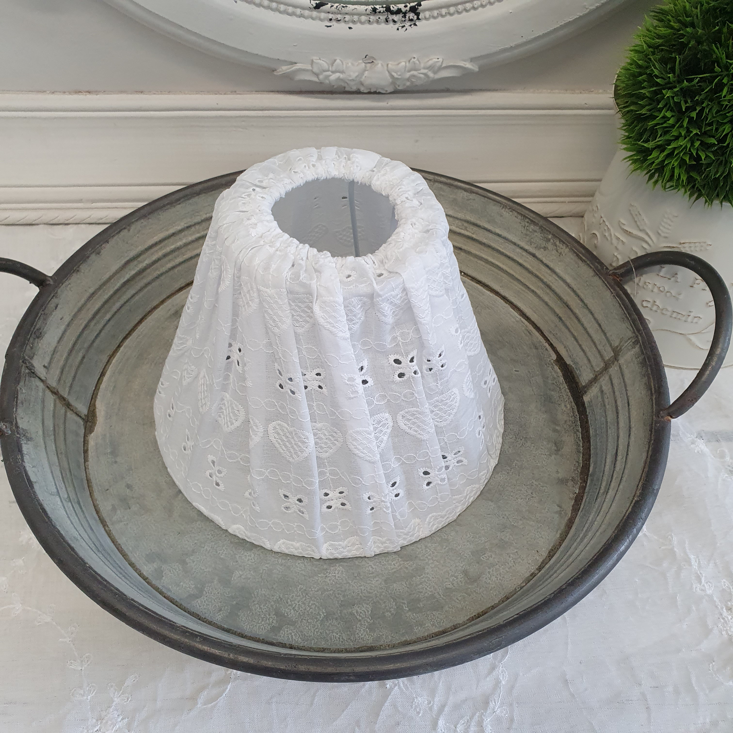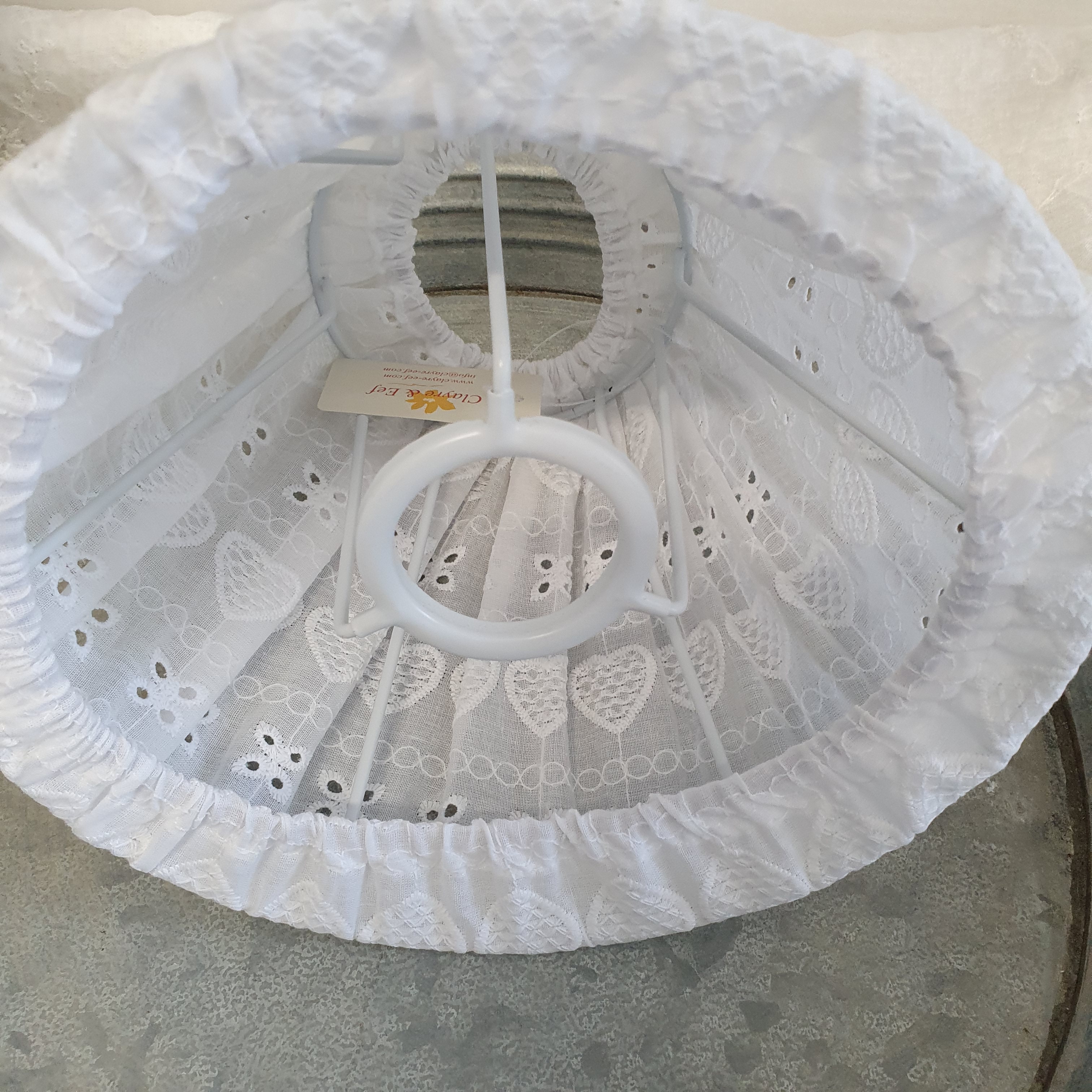 Lampenschirm HERZ Groß Weiß Rund 20x14 cm E27 er Fassung Landhaus Shabby
