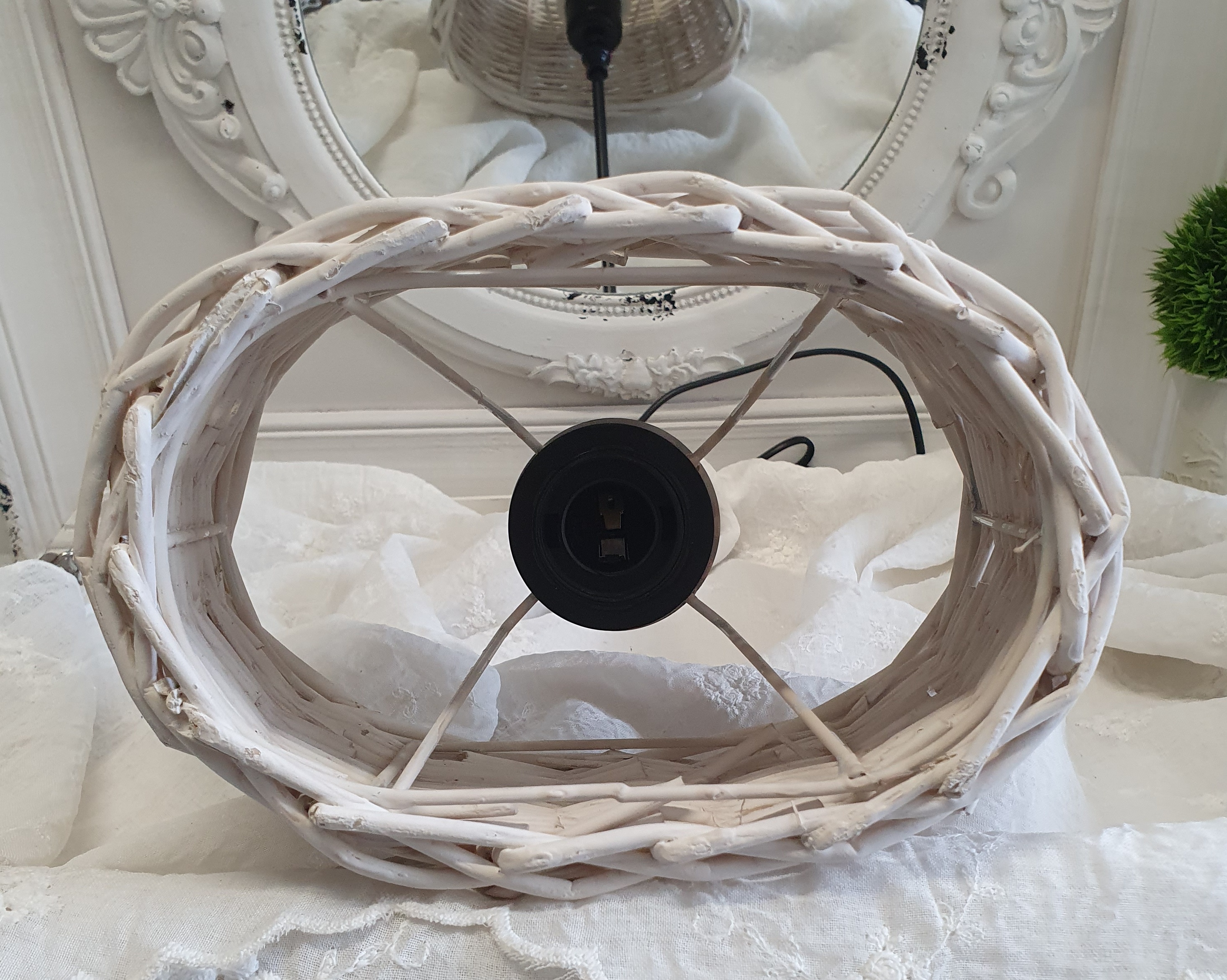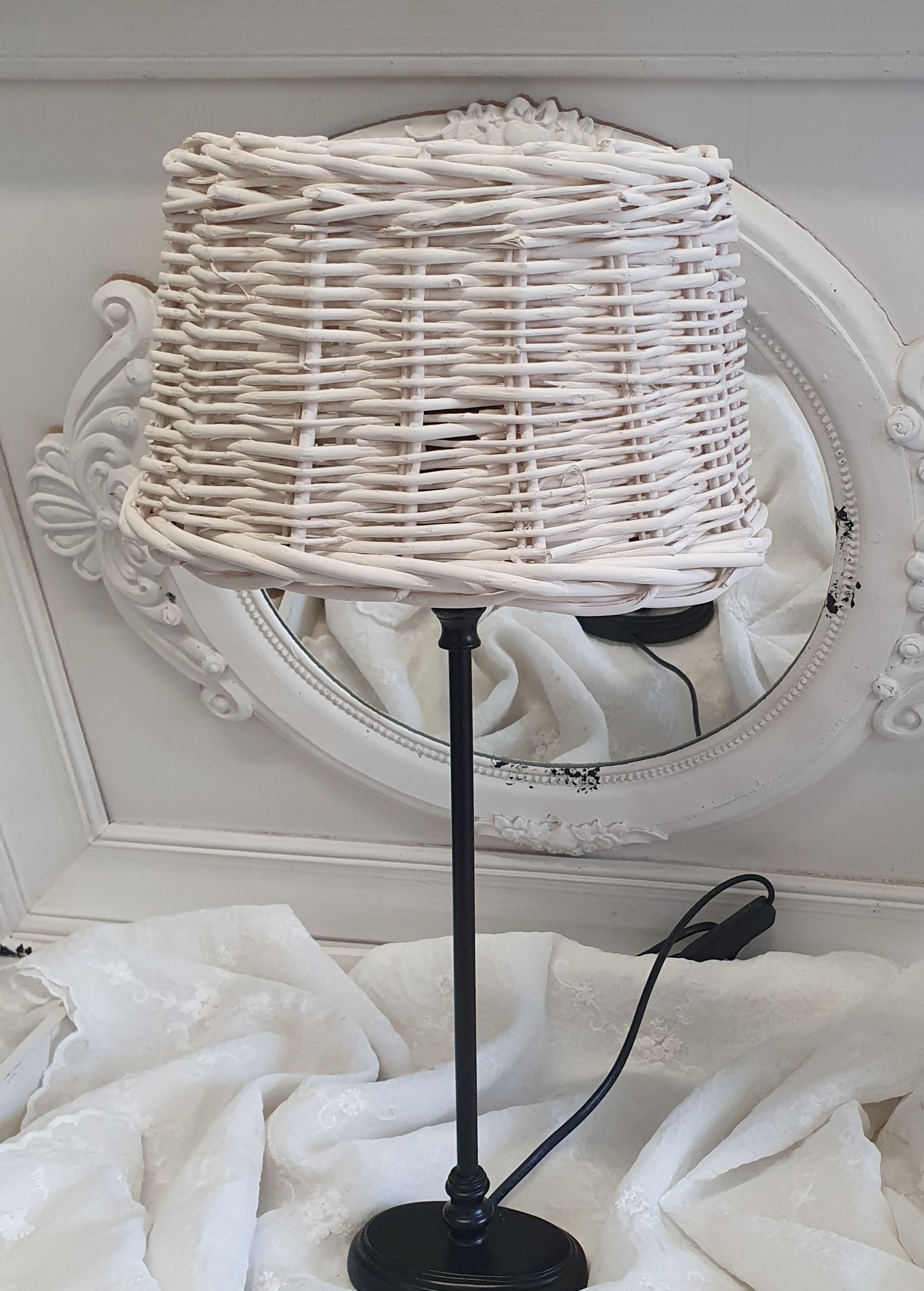 "Tischlampe RATTAN Weiß Schwarz Oval E27 Landhaus"