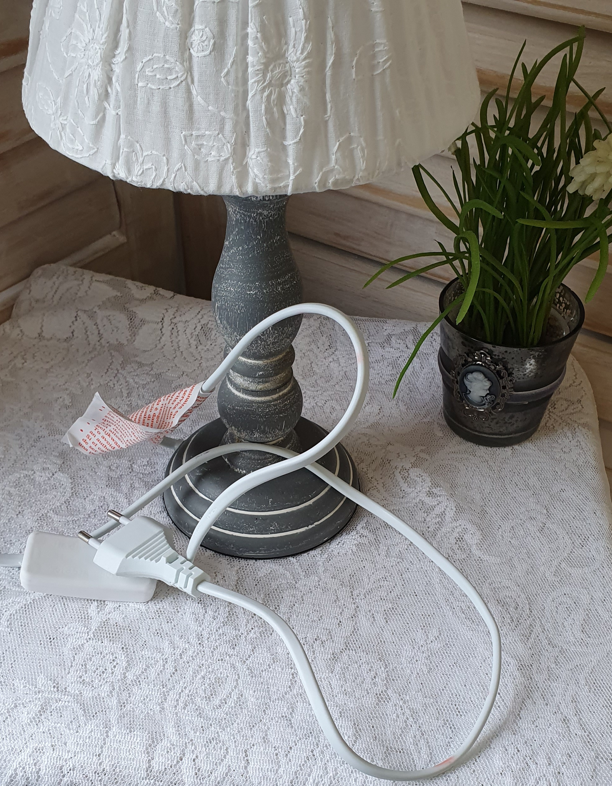 Kundenbewertungen für "Tischlampe AMBER Offwhite Grau E27 Holz Stoff Landhaus bestickt"