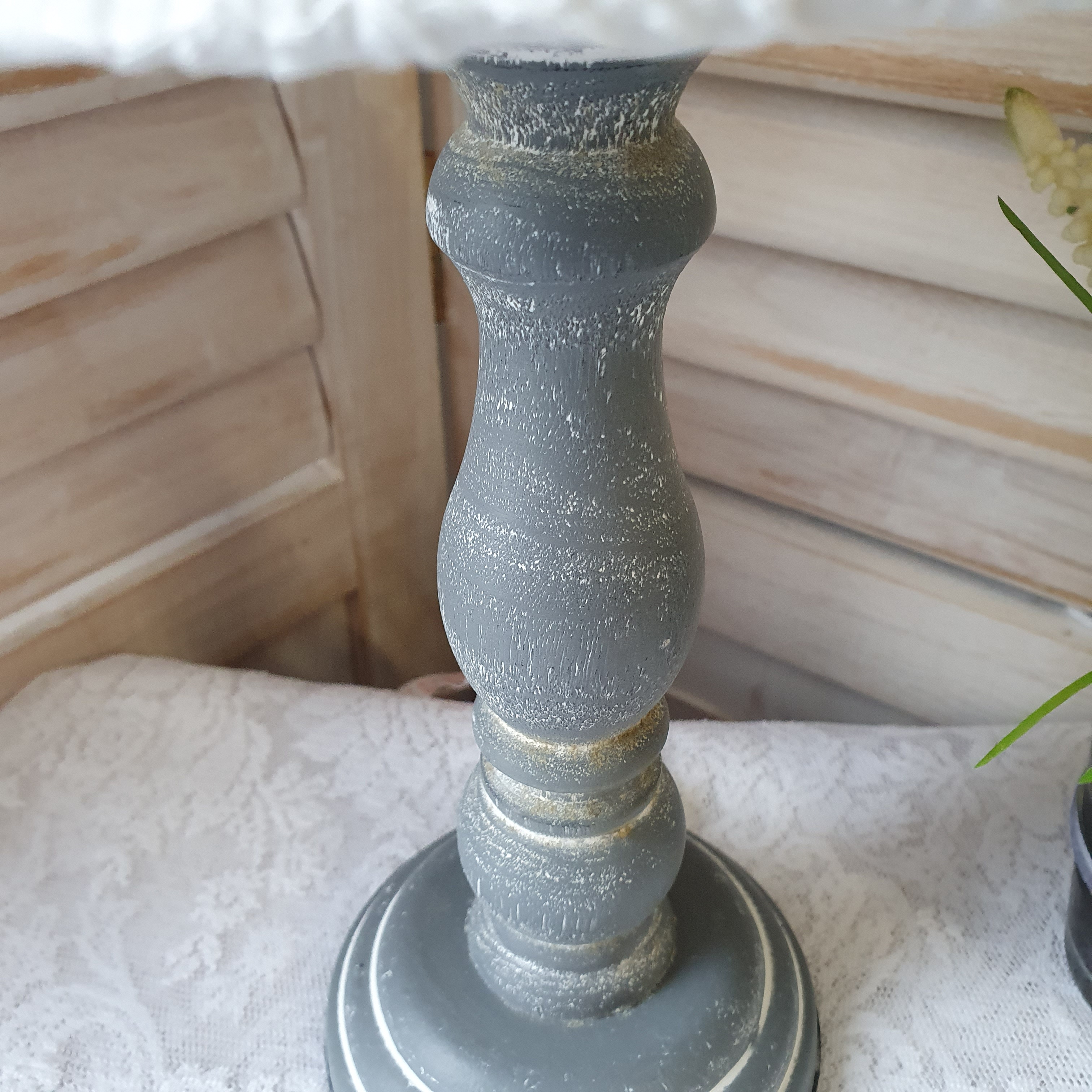 Tischlampe AMBER Offwhite Grau E27 Holz Stoff Landhaus bestickt
