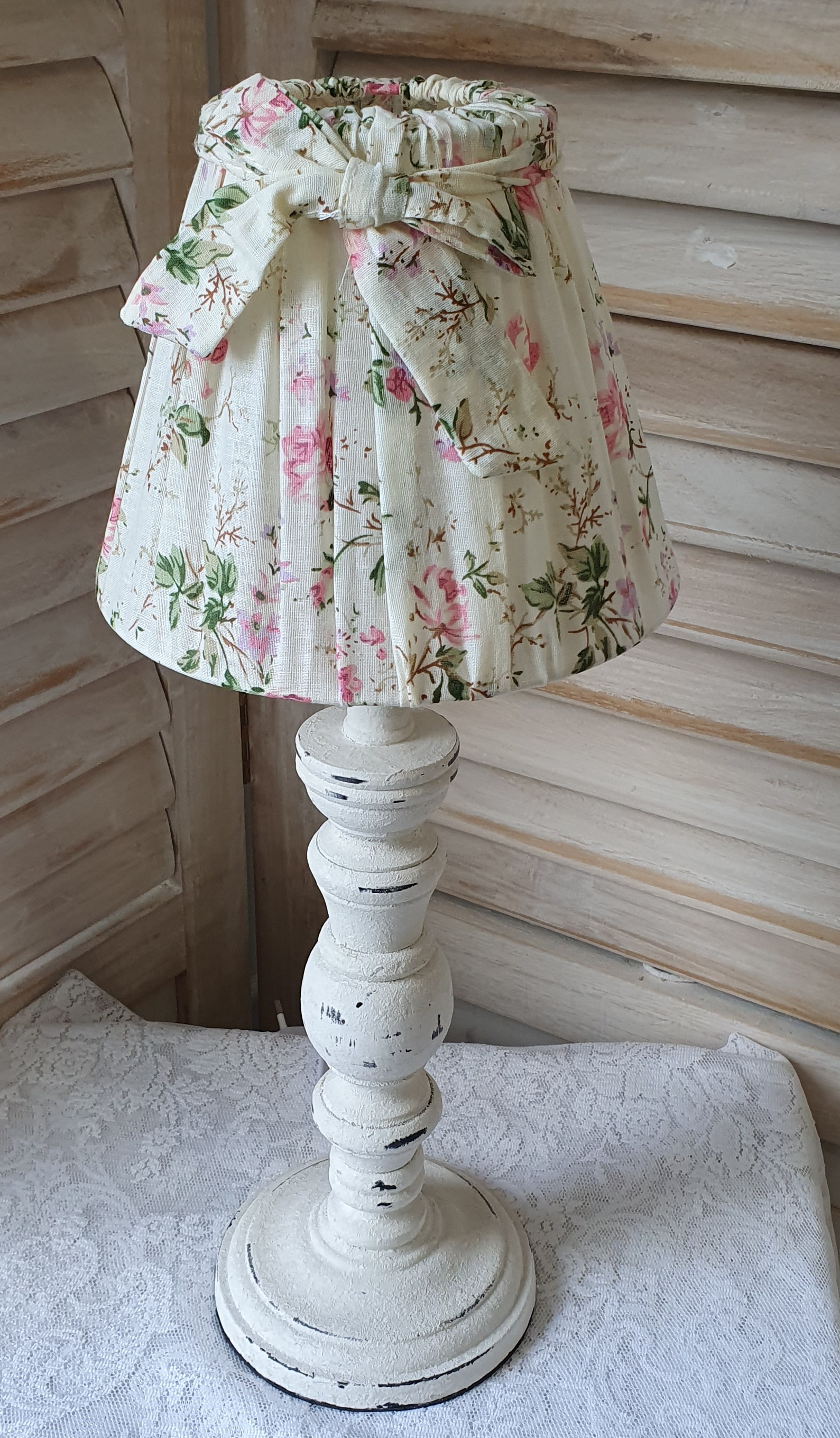 Tischleuchte LEONIE Holz Offwhite Blumen Nachttisch Tisch Lampe E 27 Shabby