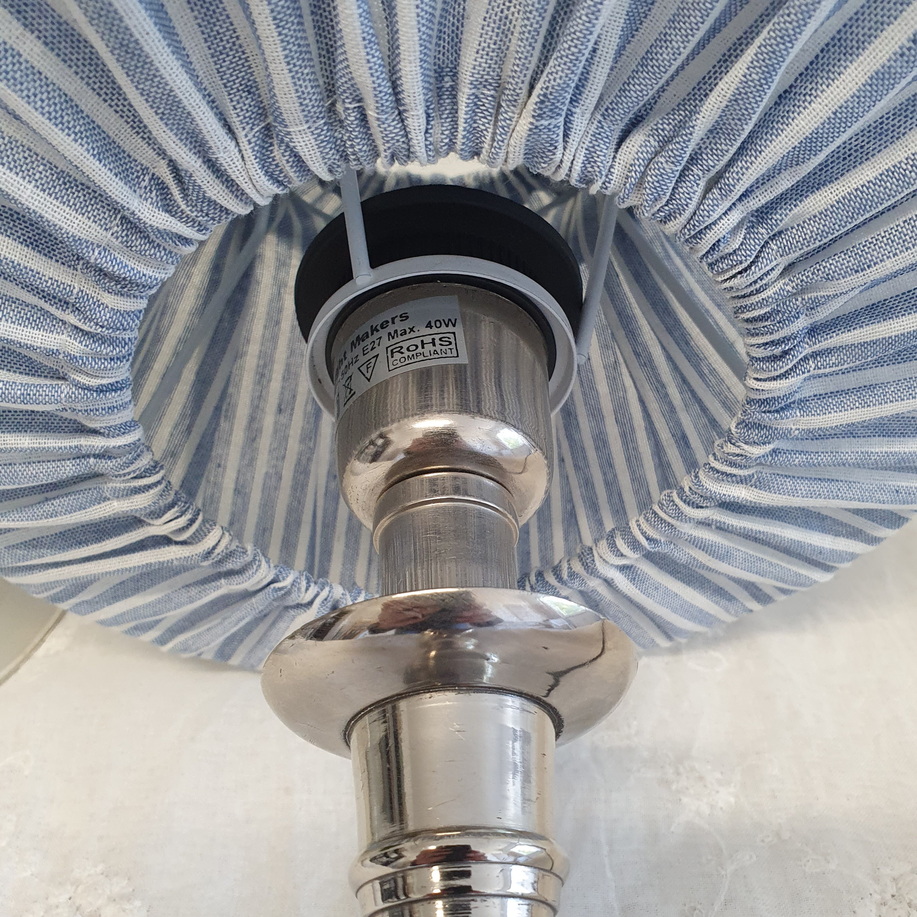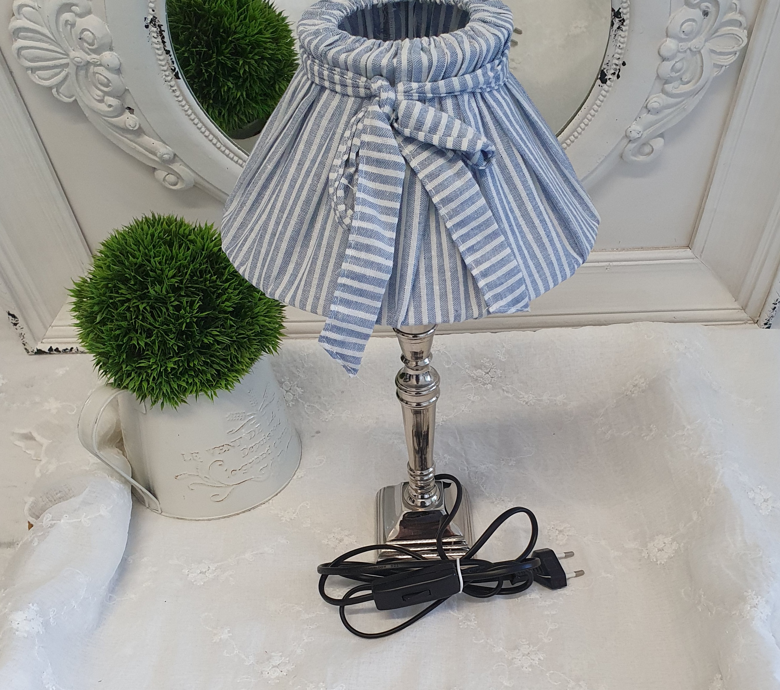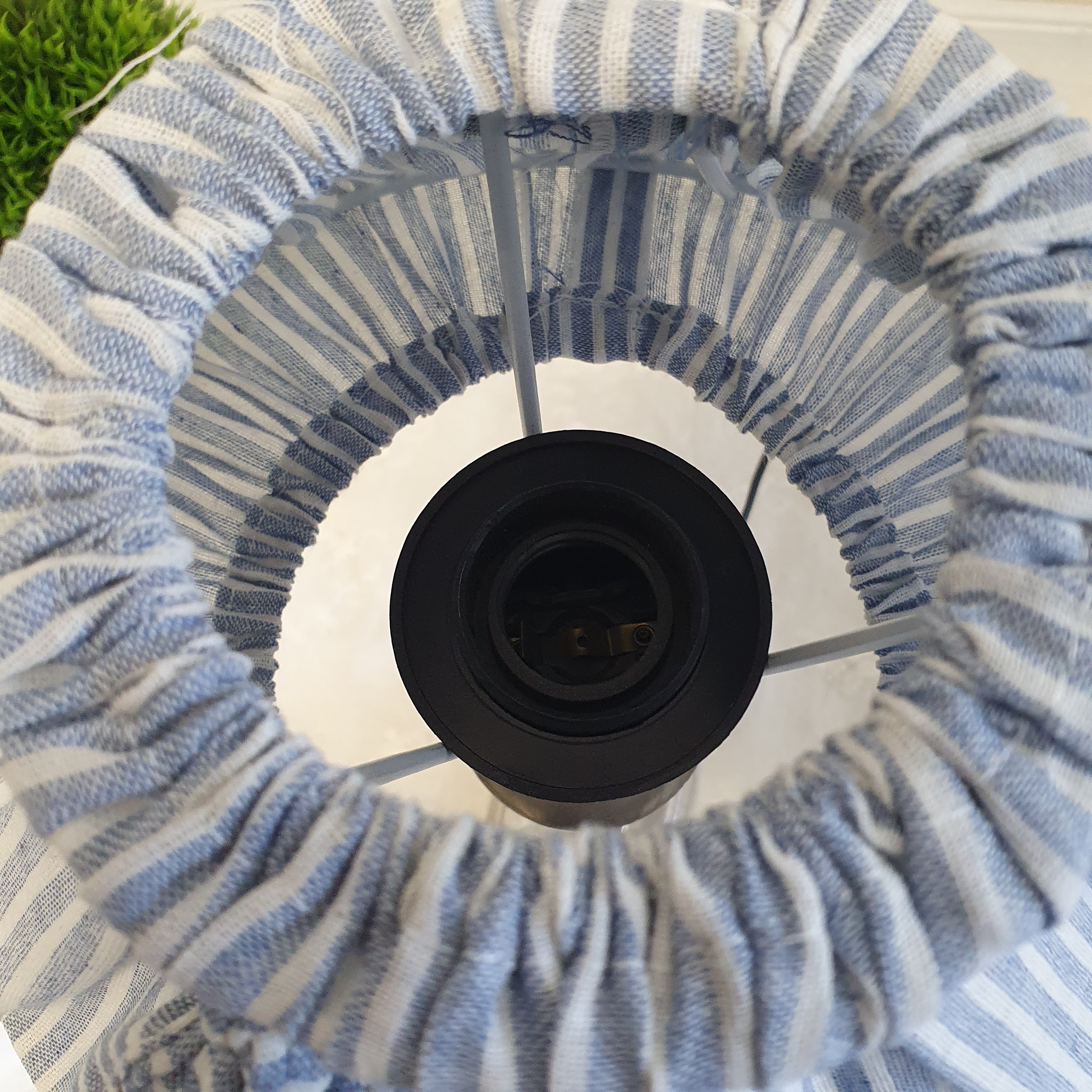 "Tischlampe MARITIM Stoff rund Metallfuß 40 cm blau weiß"